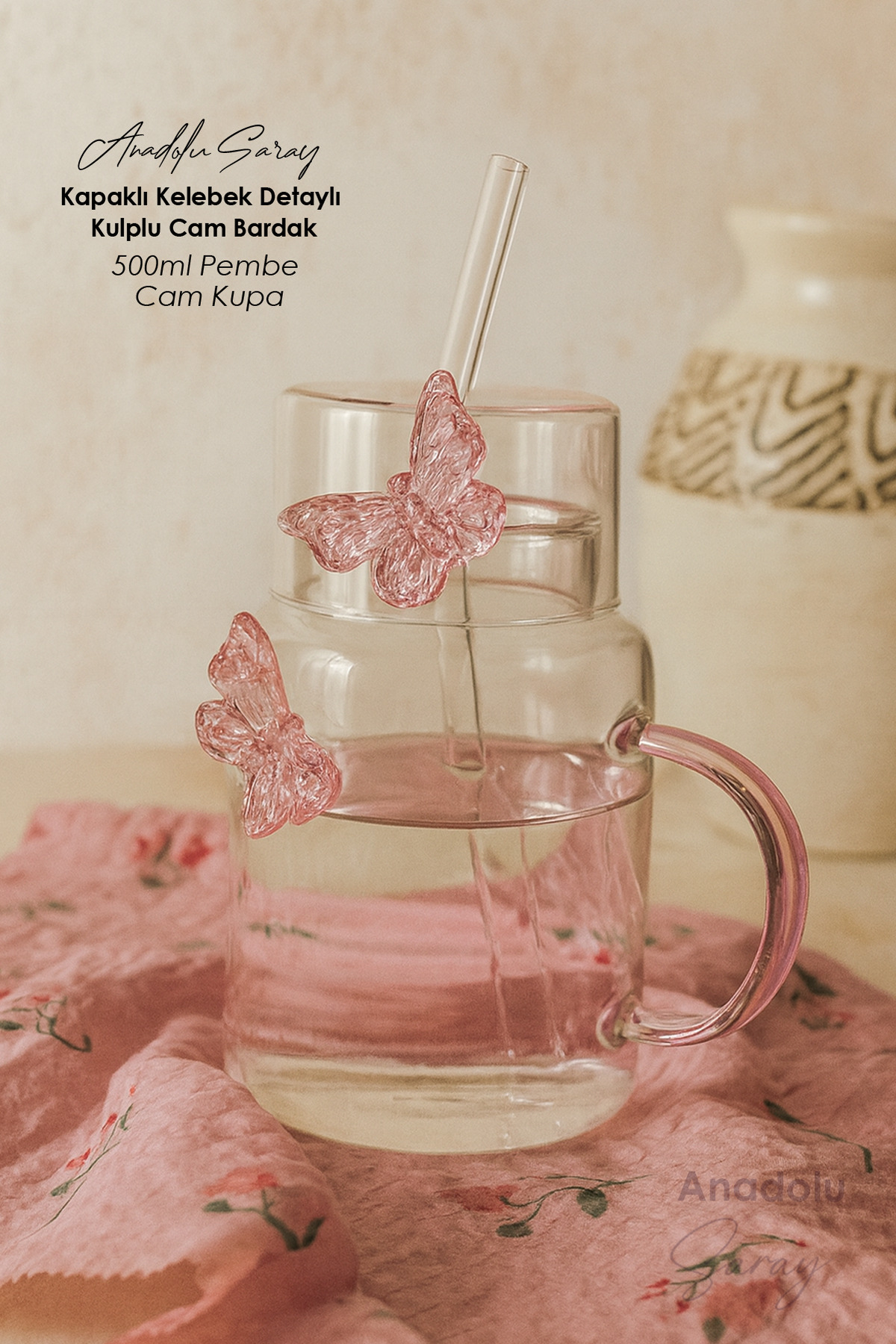 500ml Kapaklı Kelebek Detaylı Kulplu Cam Bardak Şık Pembe Cam Kupa, Zarif Tasarım, Su ve İçecek Bard 500ml Kapaklı Kelebek Detaylı Kulplu Cam Bardak Şık Pembe Cam Kupa, Zarif Tasarım, Su ve İçecek Bard BUTTERFLY.KUPA تک سایز