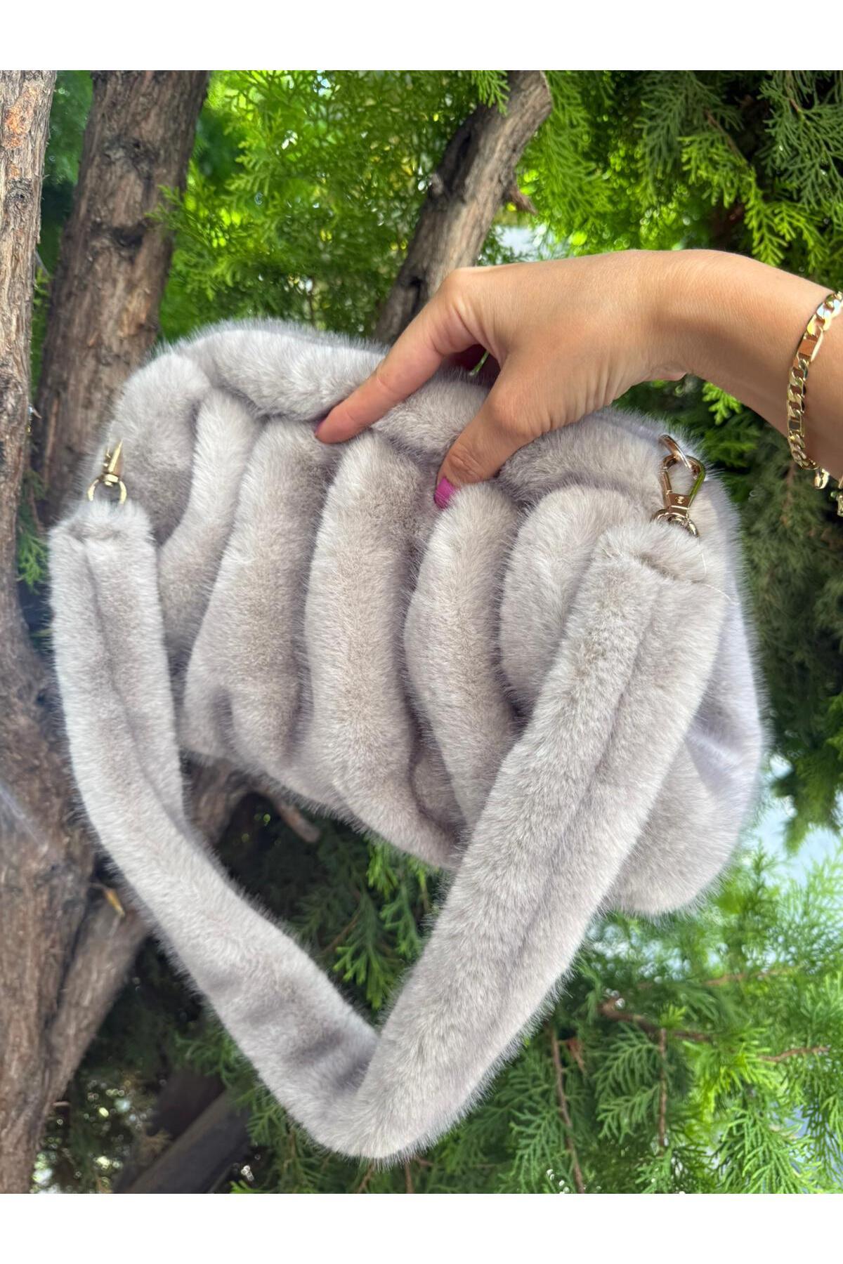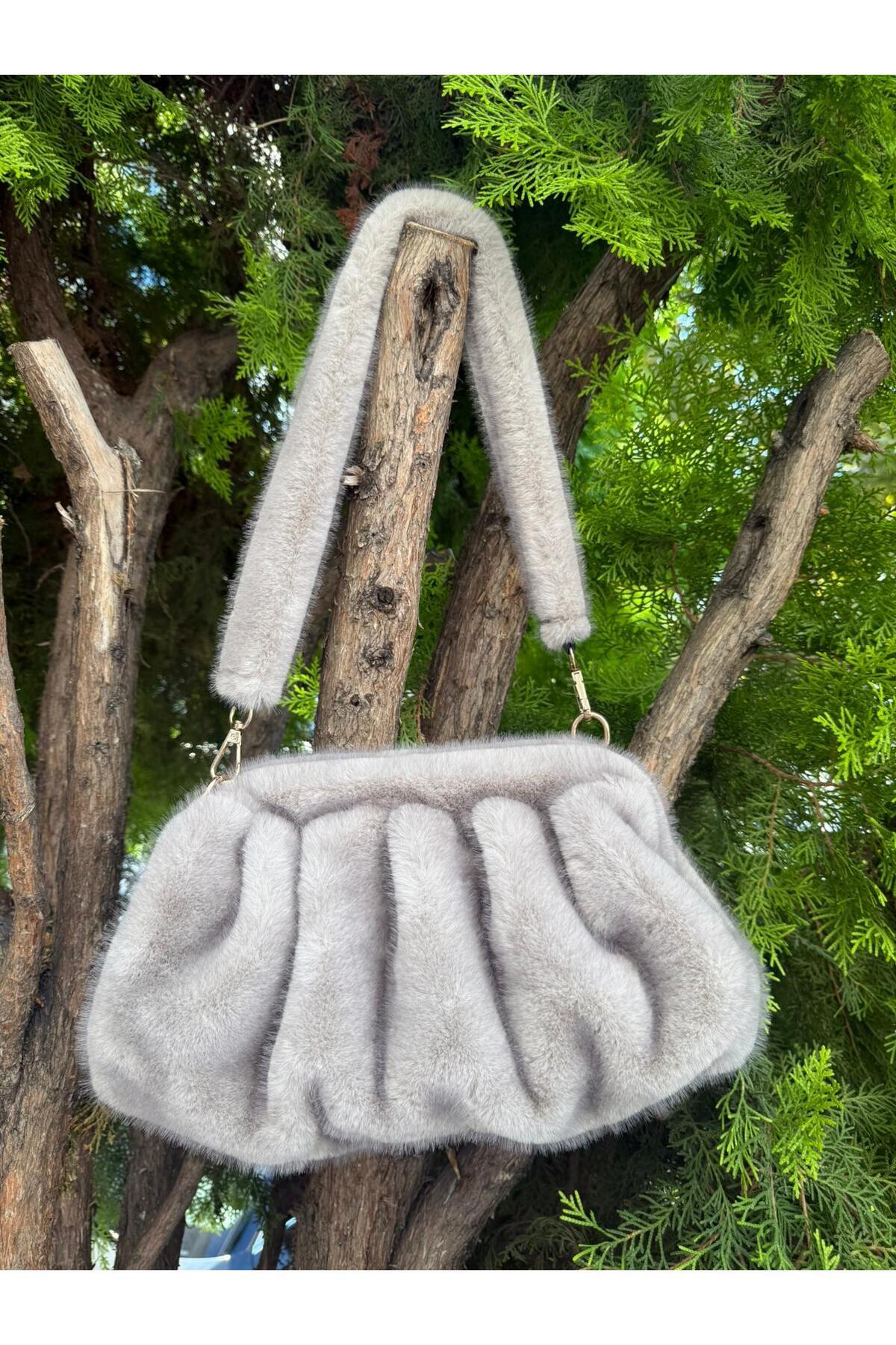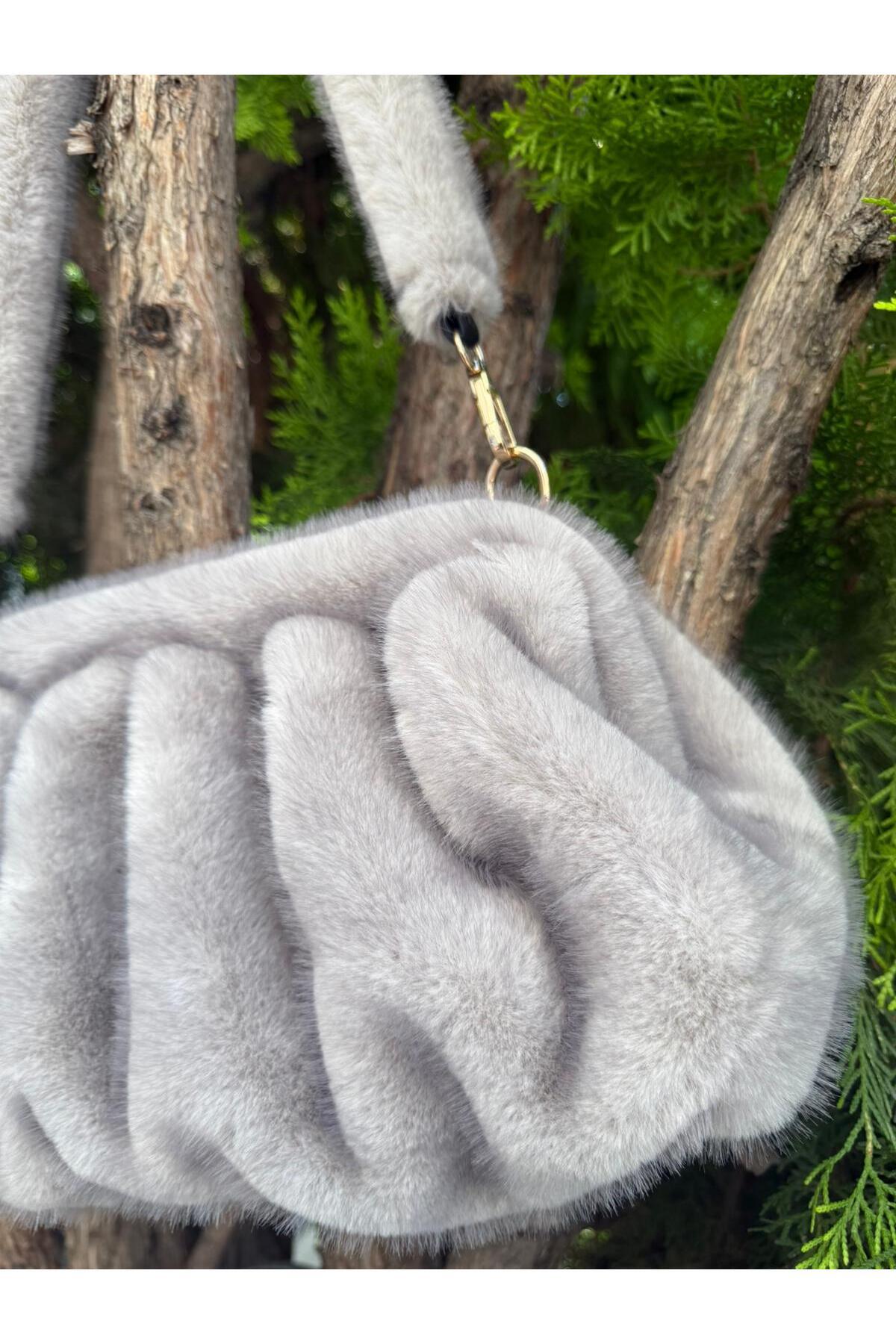 NWC-017 Peluş Gri El Çantası NWC-017 Peluş Gri El Çantası NWÇANTA تک سایز