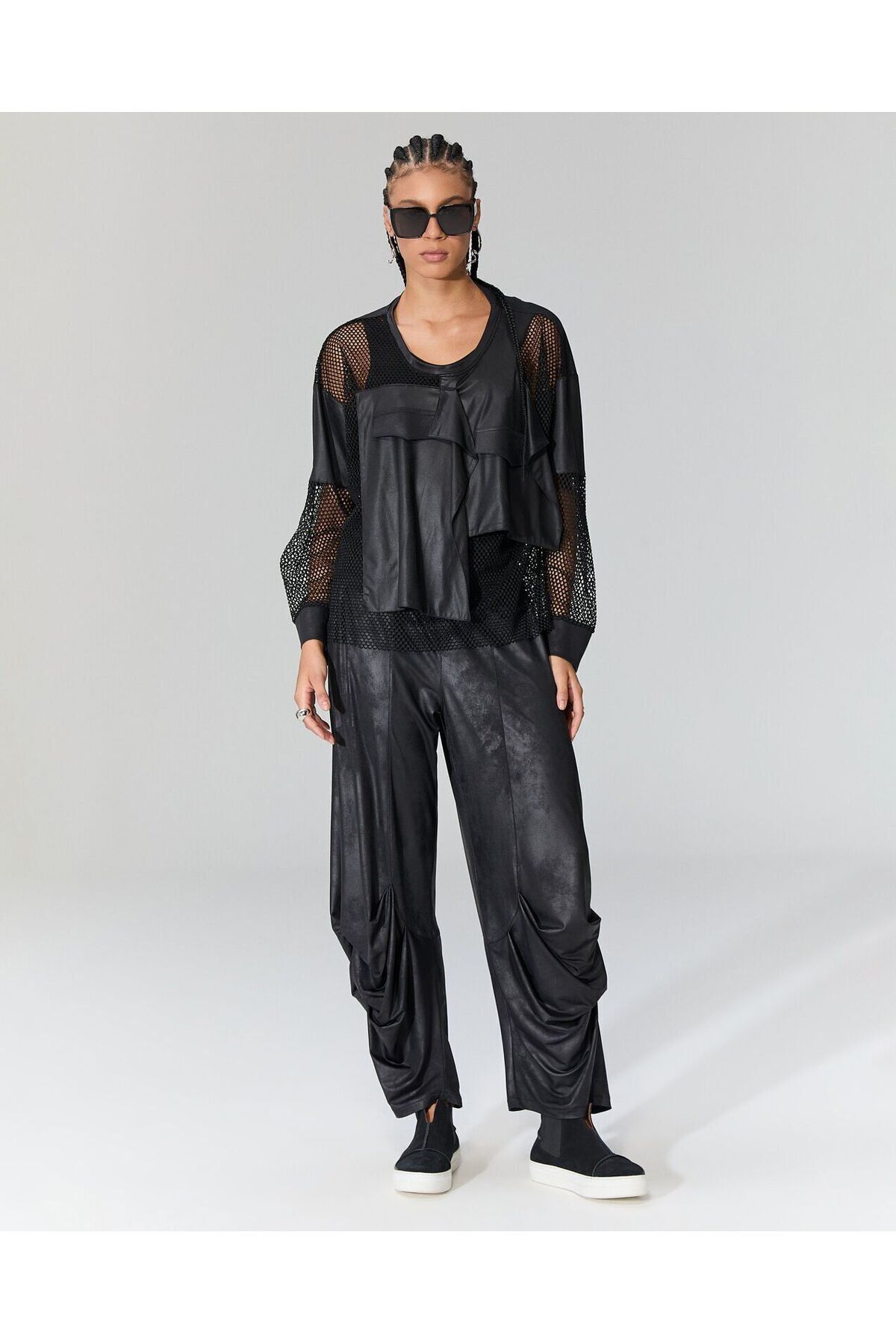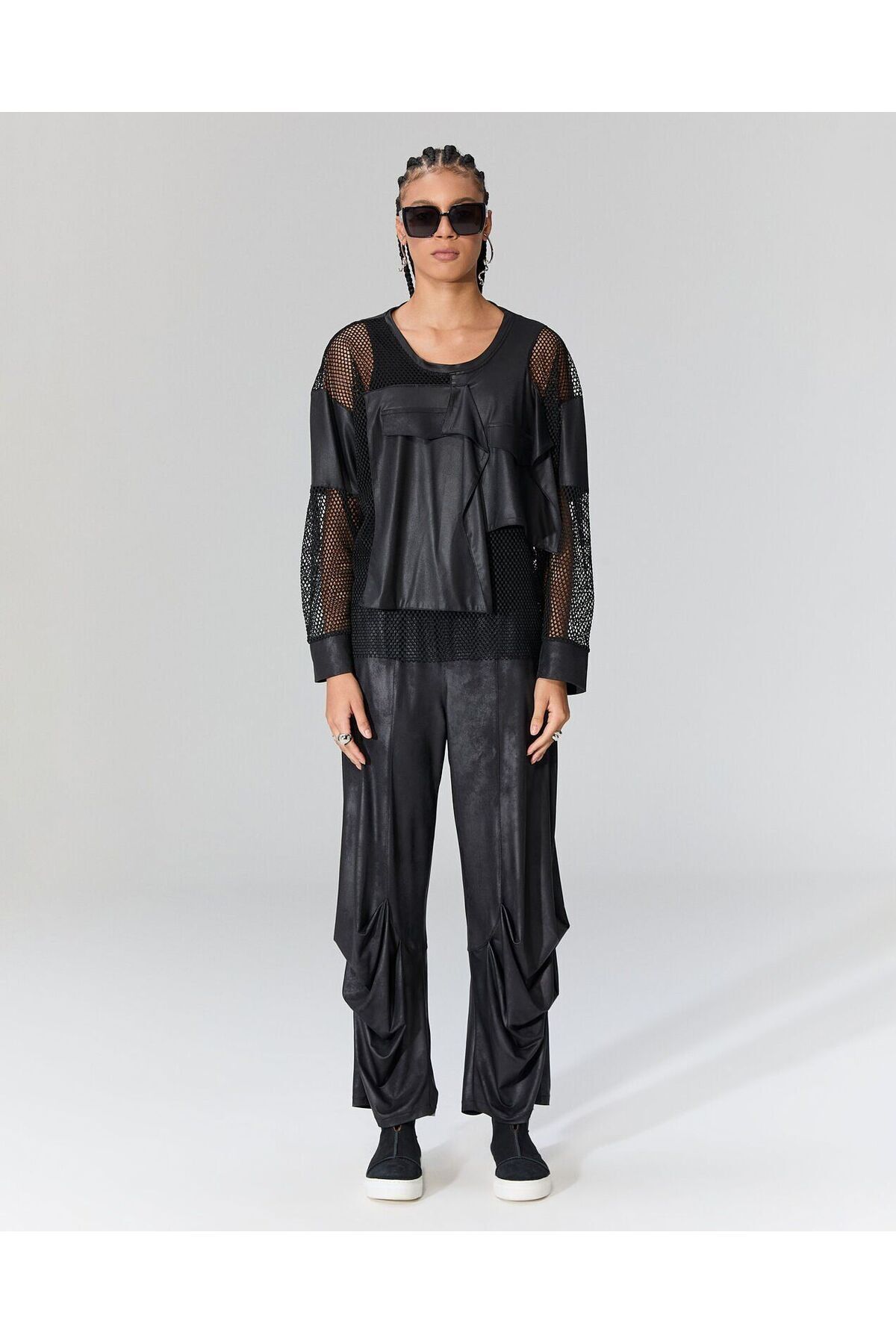 Önü file detaylı deri bluz-L Önü file detaylı deri bluz-L KCHF2841AM XL