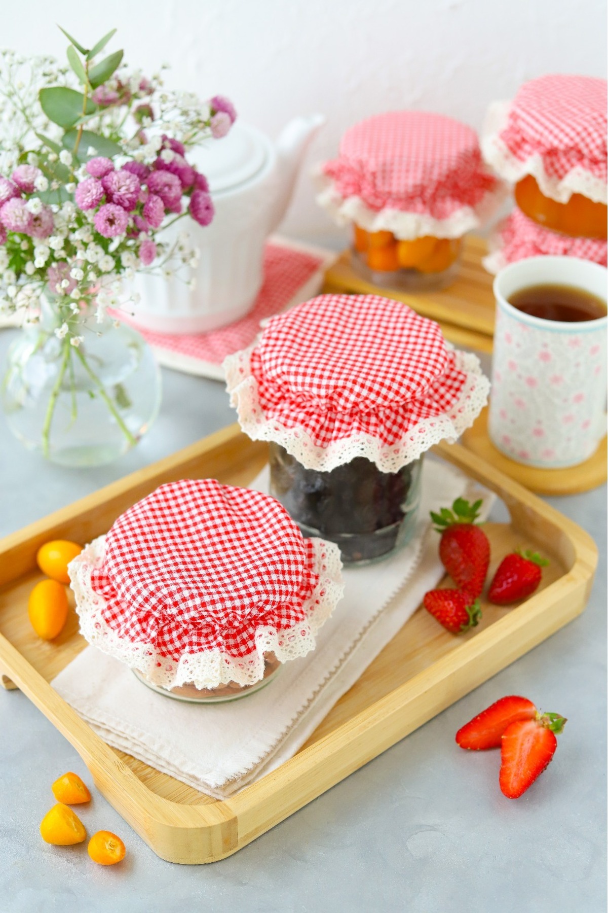 Kırmızı Ekose desnli kavanoz kapak örtüsü 6adet Kırmızı Ekose desnli kavanoz kapak örtüsü 6adet 08 تک سایز