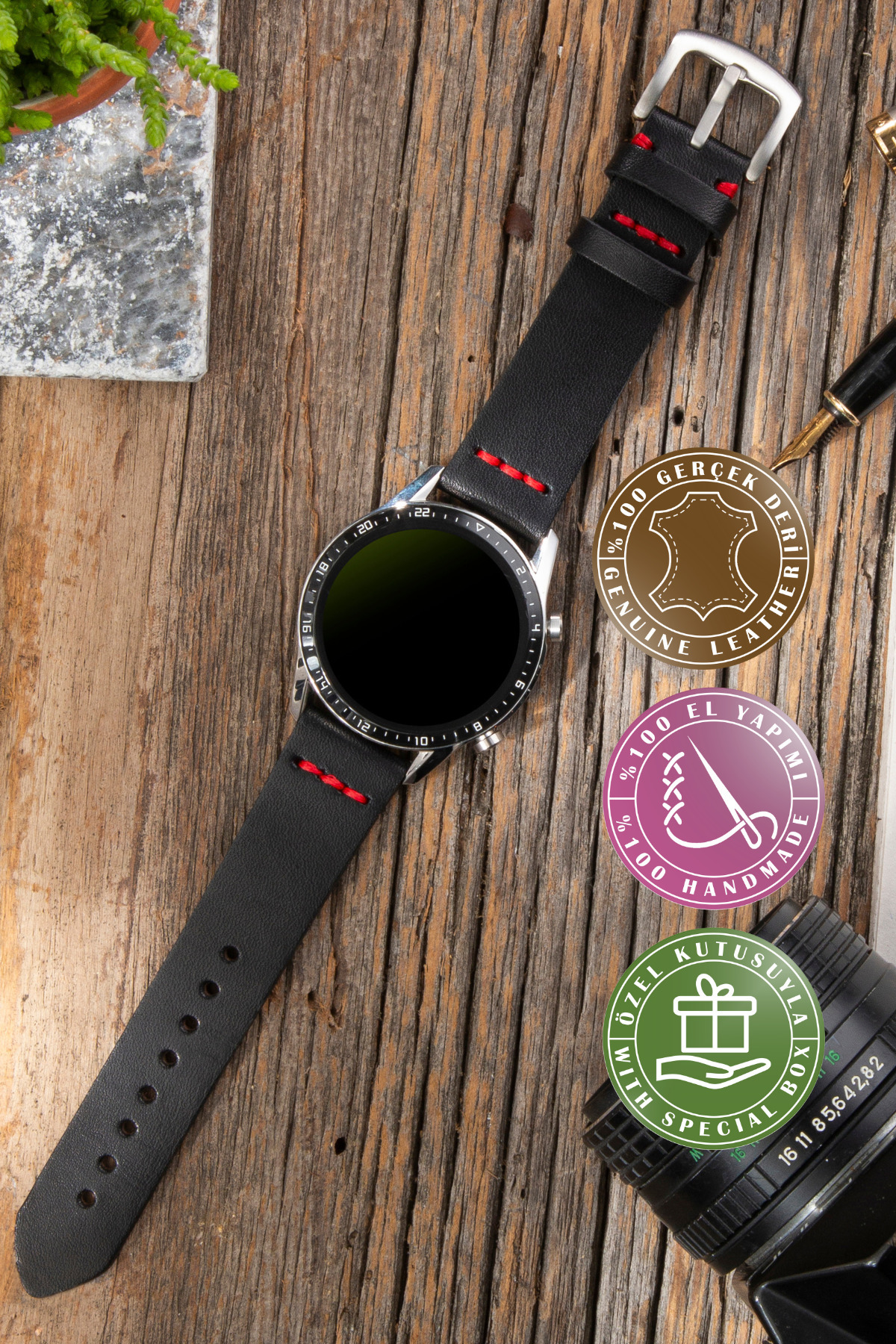 Huawei Watch 22mm Deri Kordon | GT2/GT3/GT4/GT5/GT6 Pro | Yan Dikişli | Siyah | Gümüş Toka Huawei Watch 22mm Deri Kordon | GT2/GT3/GT4/GT5/GT6 Pro | Yan Dikişli | Siyah | Gümüş Toka HY01 تک سایز