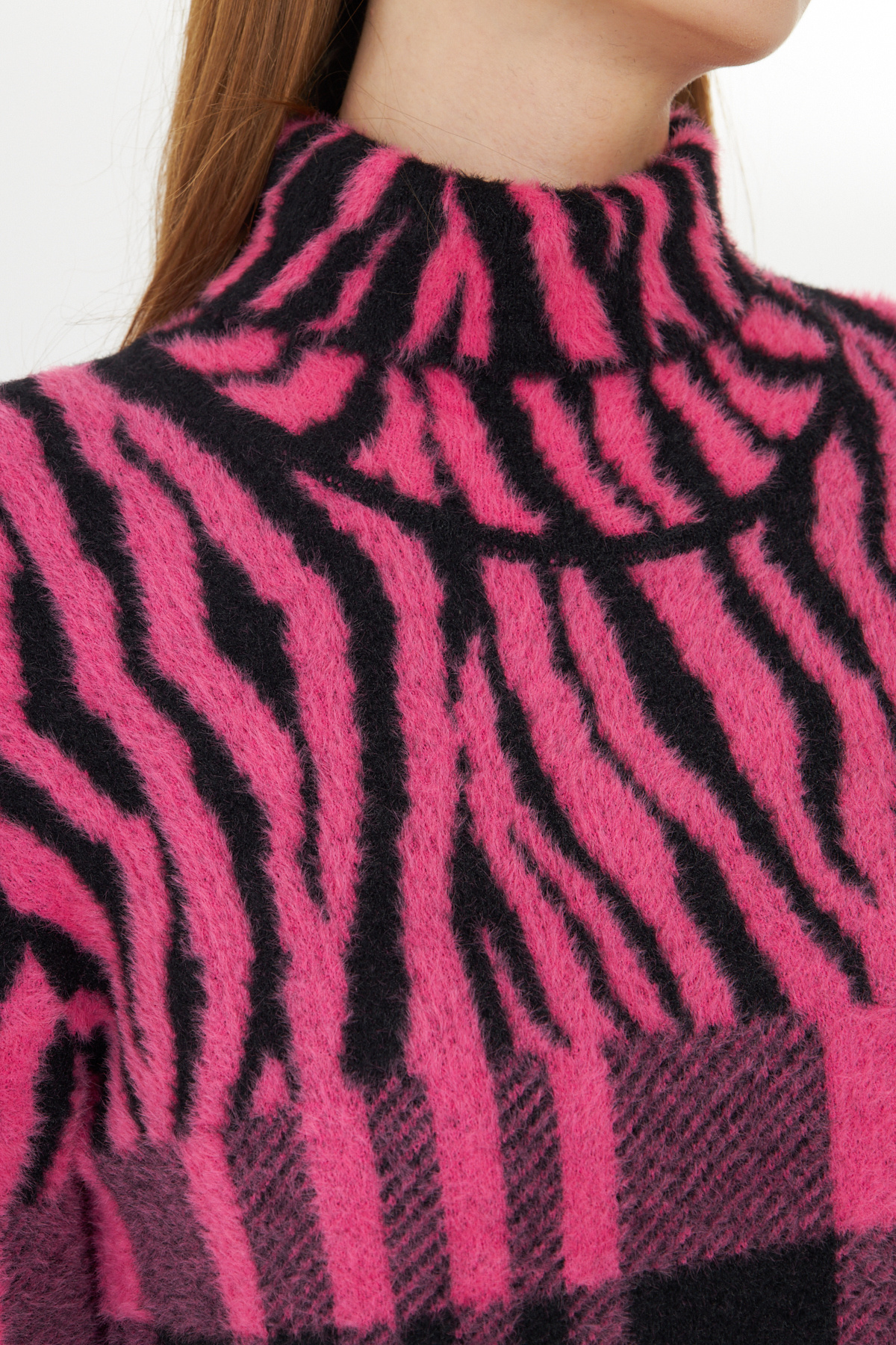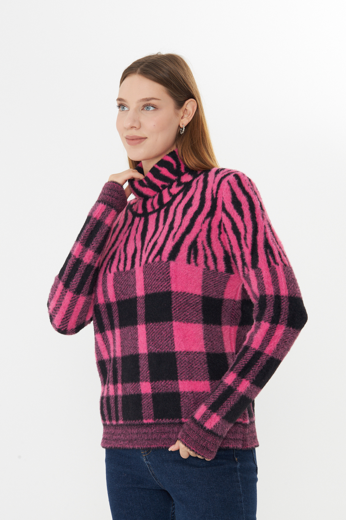 Pembe Zebra ve Ekose Desenli Uzun Kol Kadın Angora Triko Kazak Pembe Zebra ve Ekose Desenli Uzun Kol Kadın Angora Triko Kazak 38301 L