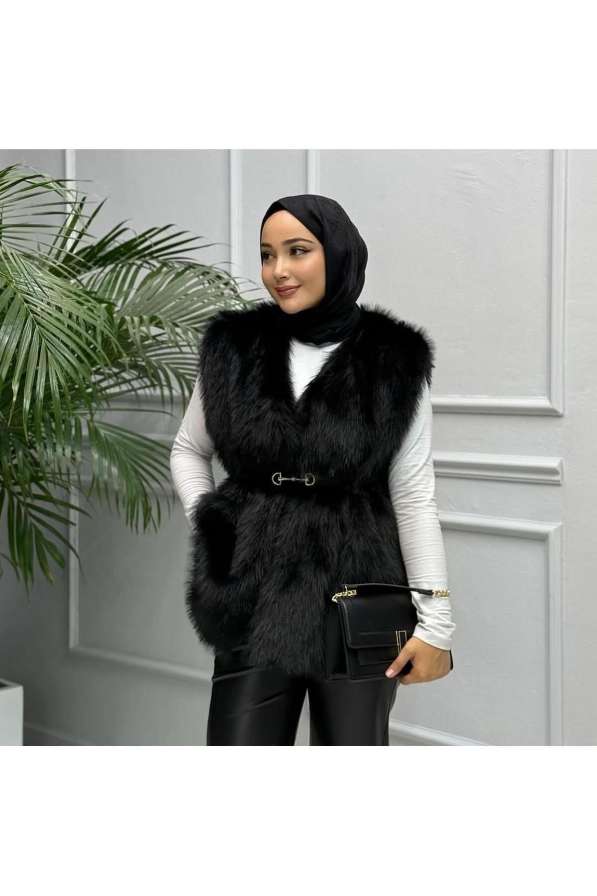 Kadın Ceket Yaka Astarlı Kemerli Kürk Yelek 11155 60281116 Kadın Ceket Yaka Astarlı Kemerli Kürk Yelek 11155 60281116 40