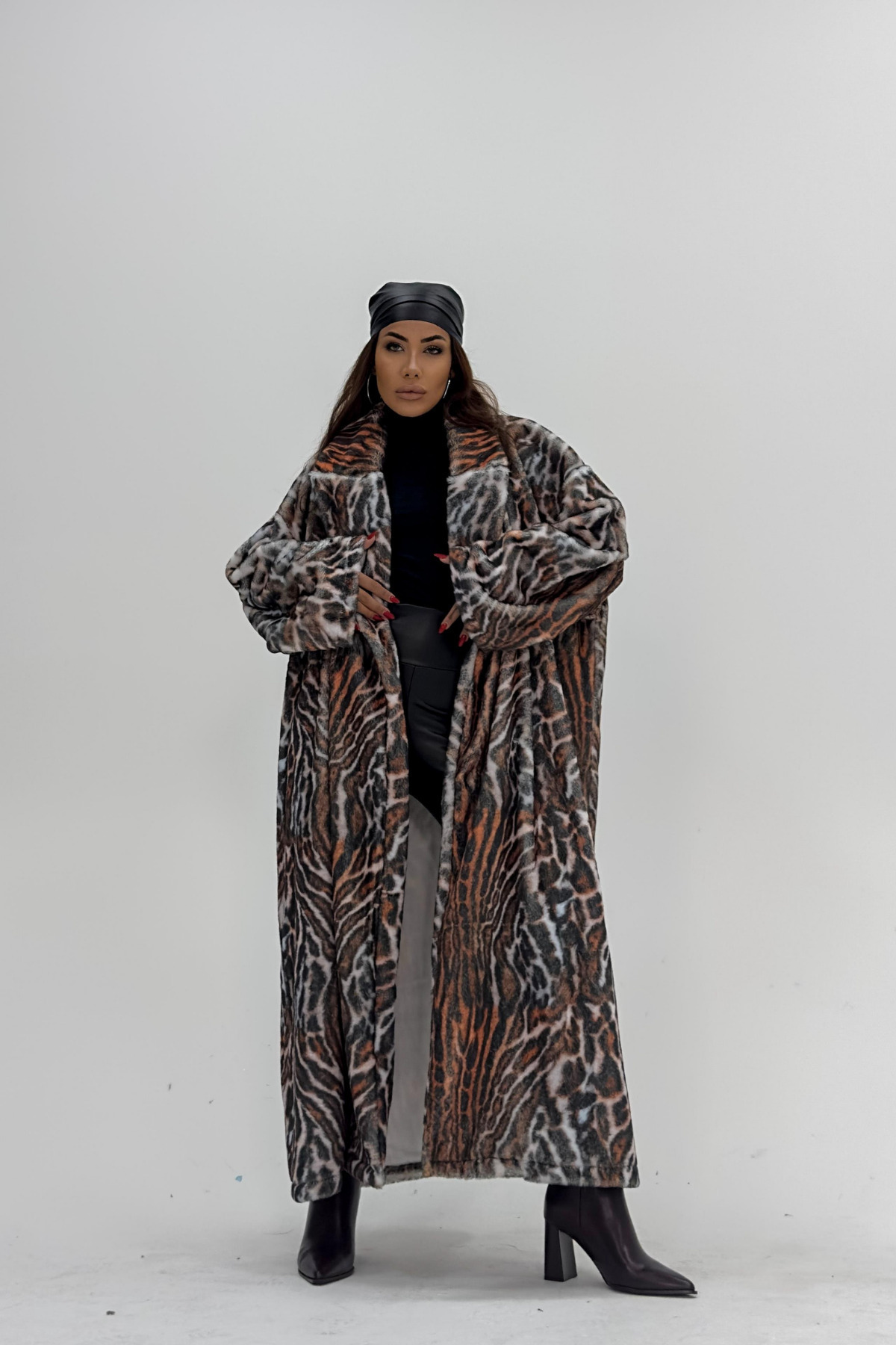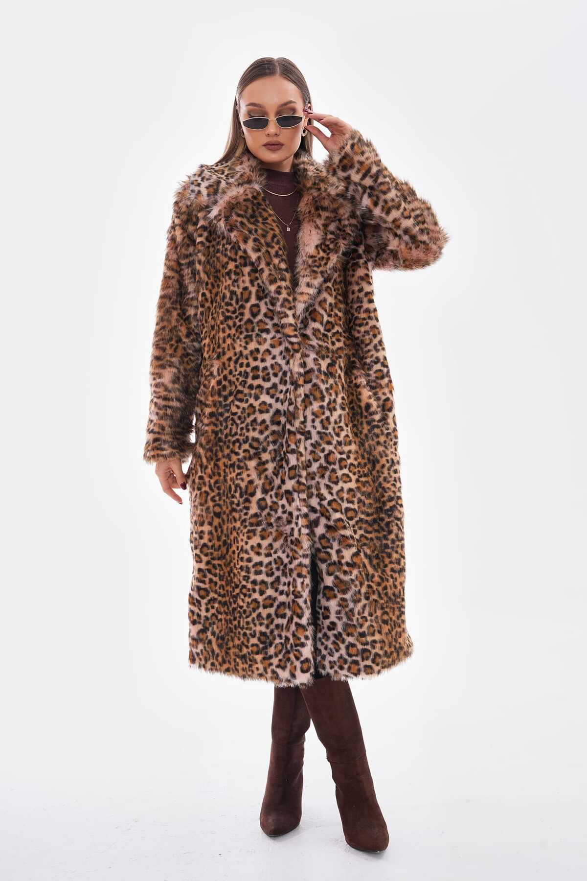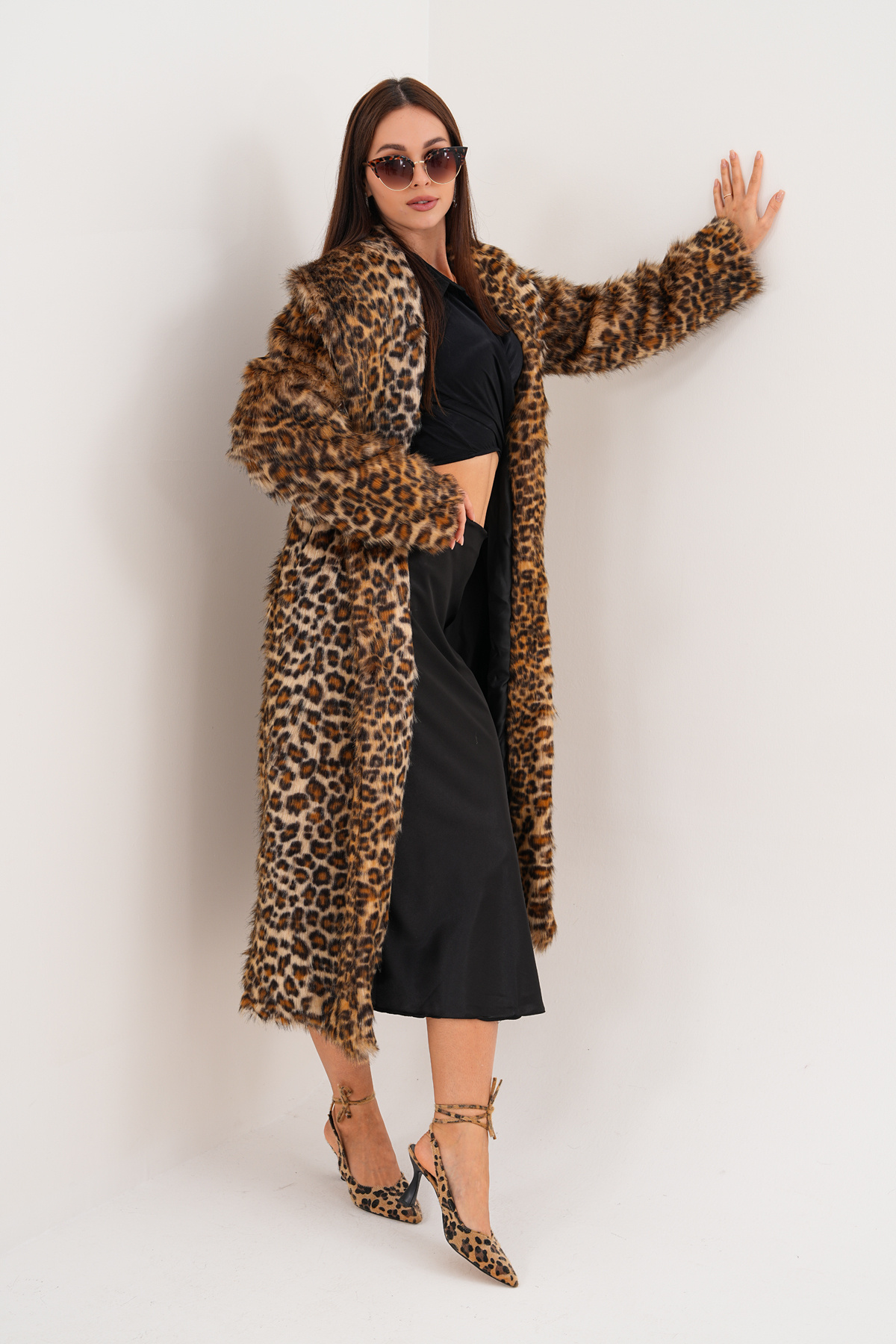 Tam Boy Şal Yaka Leopar Tüylü Kaban Tam Boy Şal Yaka Leopar Tüylü Kaban şalkaban L/XL