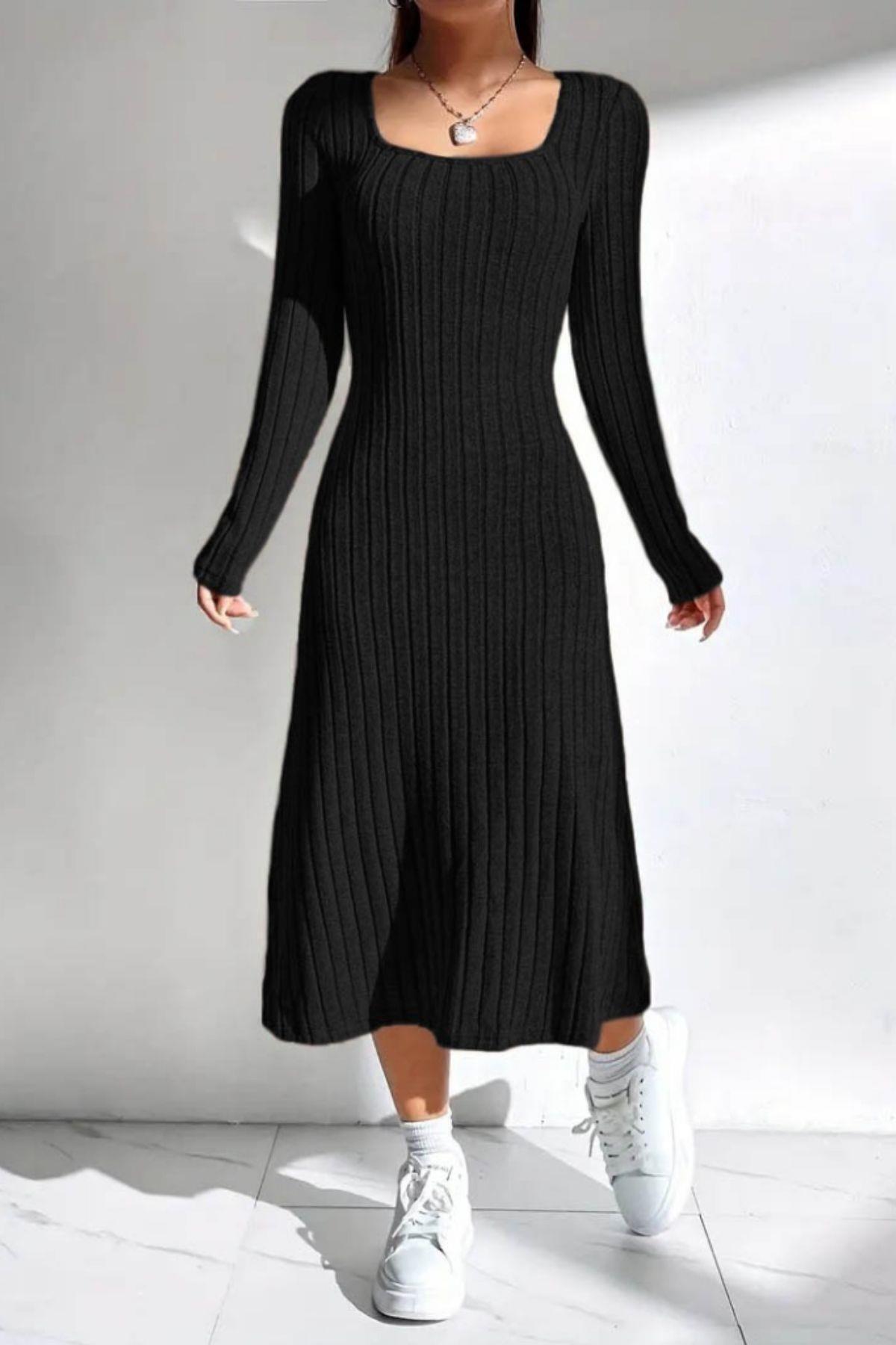Polo Yaka Fermuar Detaylı Uzun Kollu Maxi Boy Elbise - Siyah Polo Yaka Fermuar Detaylı Uzun Kollu Maxi Boy Elbise - Siyah JS61774 2XL-3XL