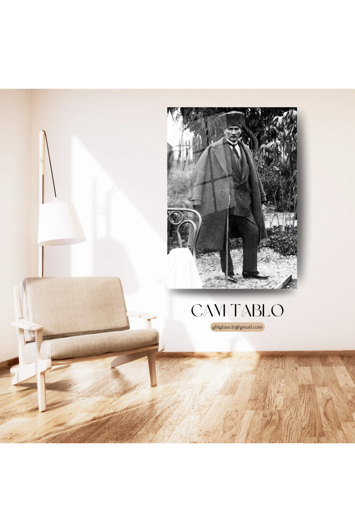 Başkomutan Atatürk Palto ve Bastonlu Şık Poz Cam Tablo Başkomutan Atatürk Palto ve Bastonlu Şık Poz Cam Tablo Atatürk03 80 x 120