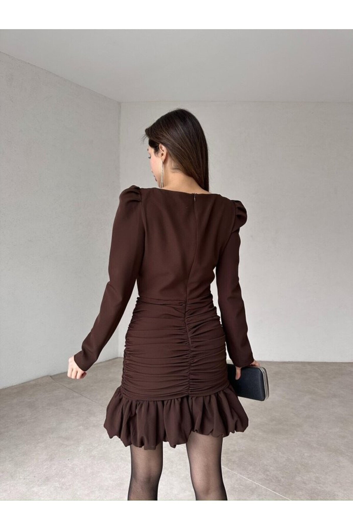 Kare Yaka Önü Düğme Detaylı Drapeli Etek Ucu Fırfırlı Stayle Bordo Mini Elbise Kare Yaka Önü Düğme Detaylı Drapeli Etek Ucu Fırfırlı Stayle Bordo Mini Elbise 3016-K-M L
