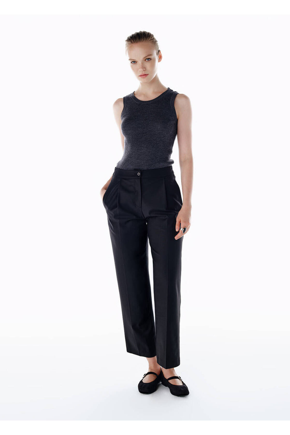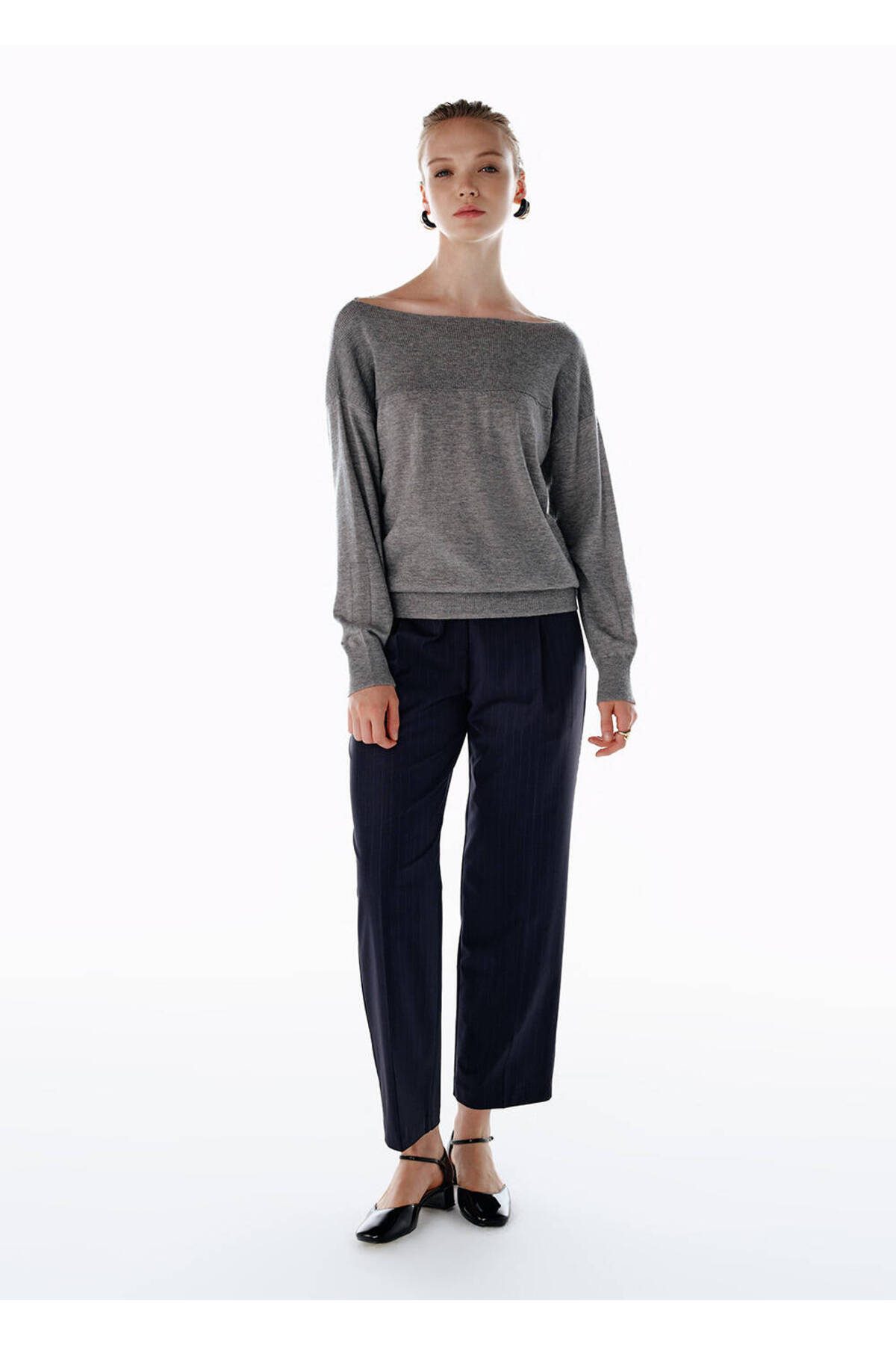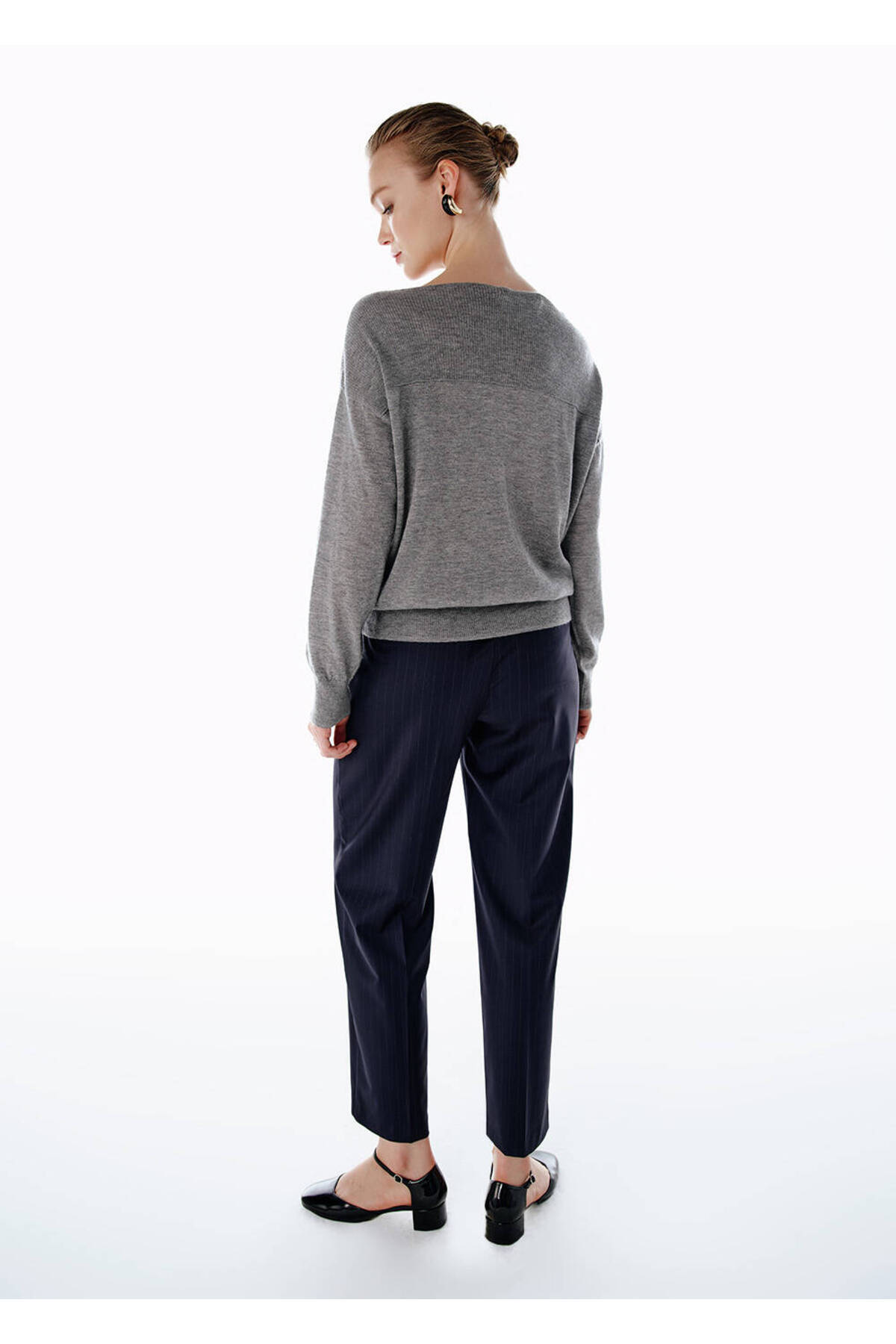Çizgili Yün Karışımlı Pantolon Lacivert Çizgili Yün Karışımlı Pantolon Lacivert 2504050609 42