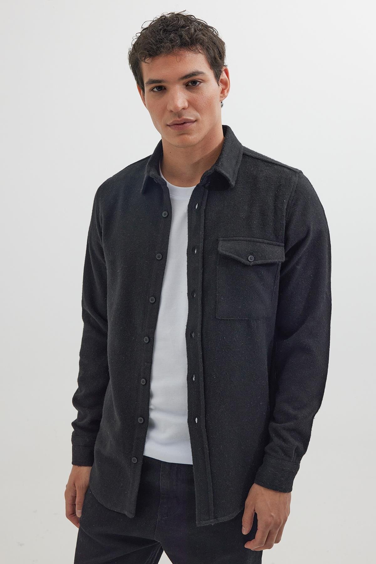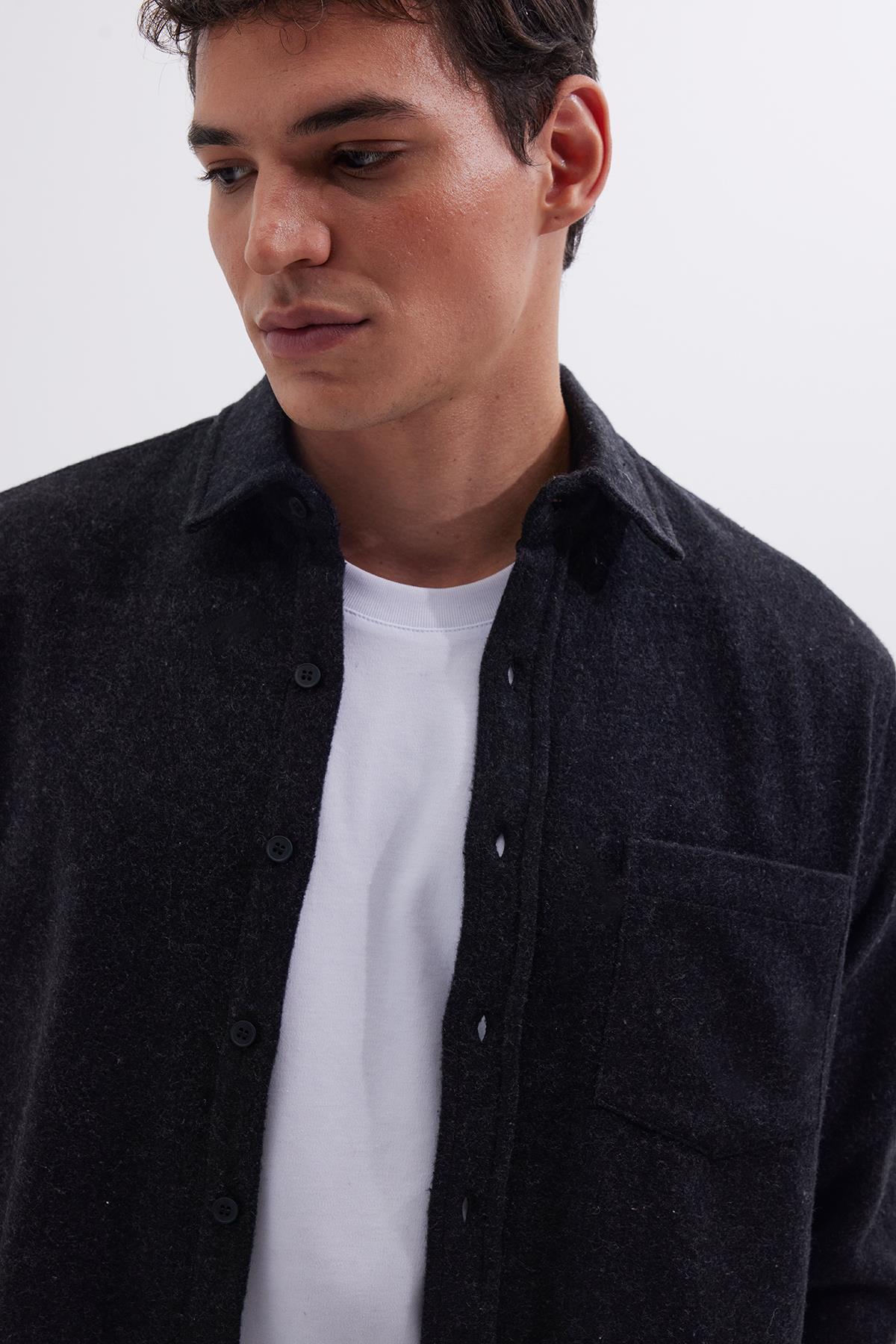 Erkek Slim Fit Tek Cep Kapaklı Düz Oduncu Spor Koyu Gri Gömlek Erkek Slim Fit Tek Cep Kapaklı Düz Oduncu Spor Koyu Gri Gömlek DR250026 2XL