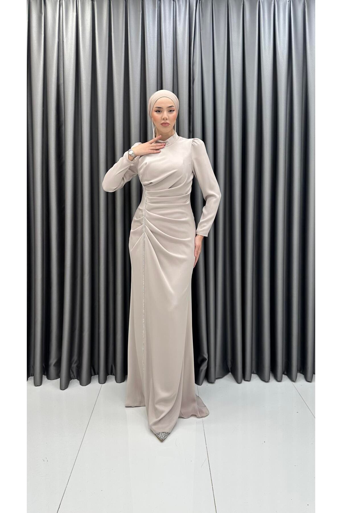 Drapeli Tesettür Abiye Elbise Drapeli Tesettür Abiye Elbise 4941 46