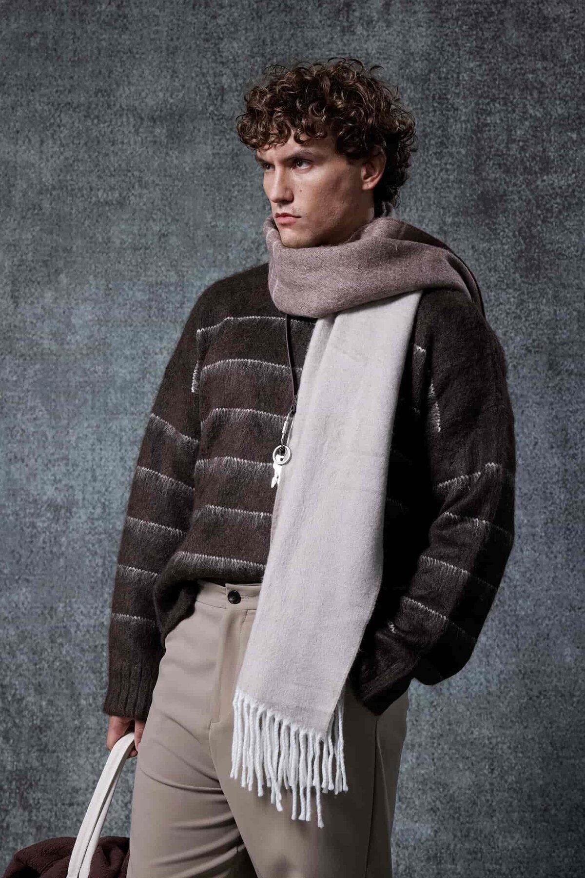 Erkek Oversize Çizgili Tüylü Triko Kazak Kahverengi Erkek Oversize Çizgili Tüylü Triko Kazak Kahverengi KZK.0092 XL