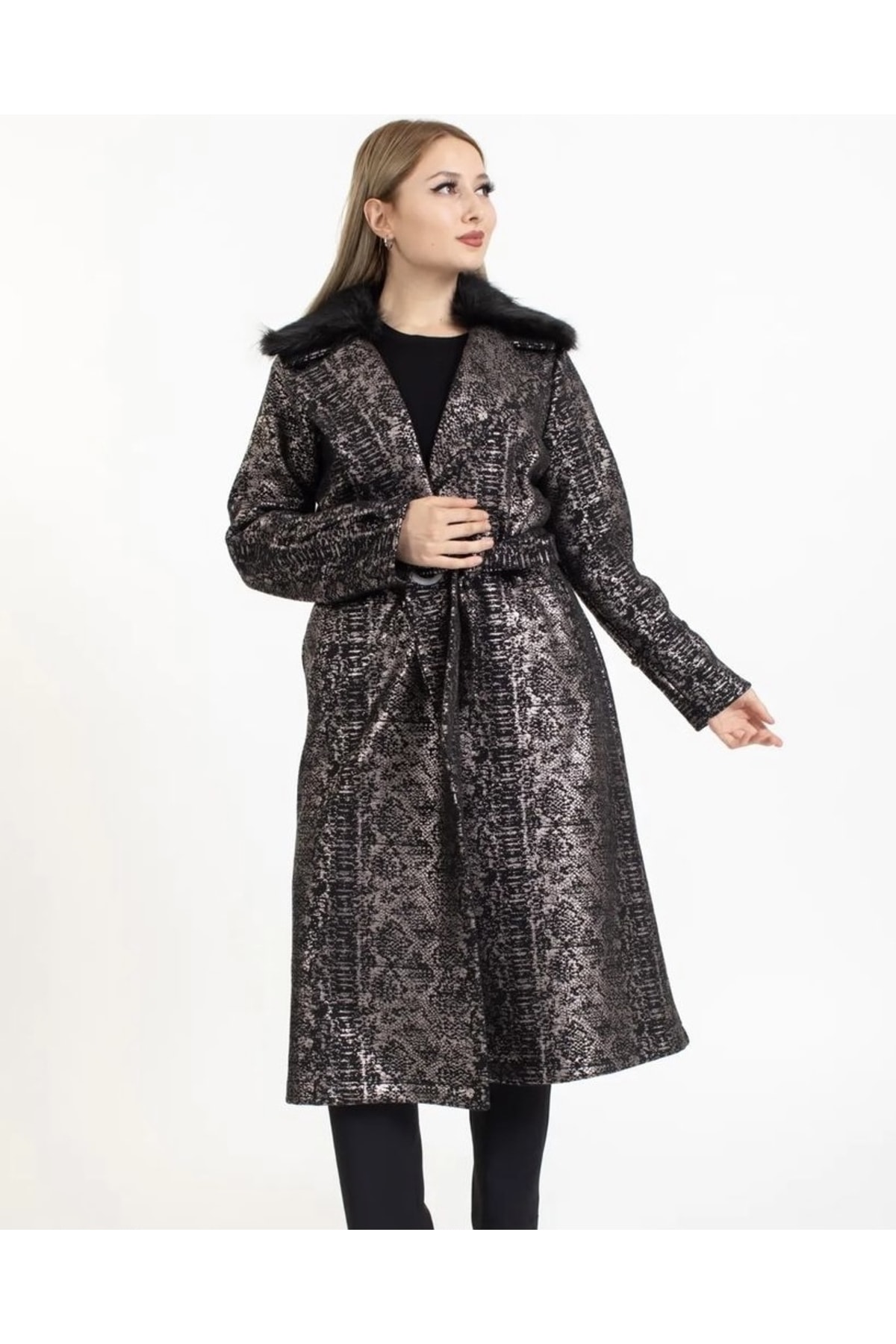 Jakarlı Düğme ve Kuşak Detaylı Şık Kadın Kaban 50877 Jakarlı Düğme ve Kuşak Detaylı Şık Kadın Kaban 50877 2621950877 44