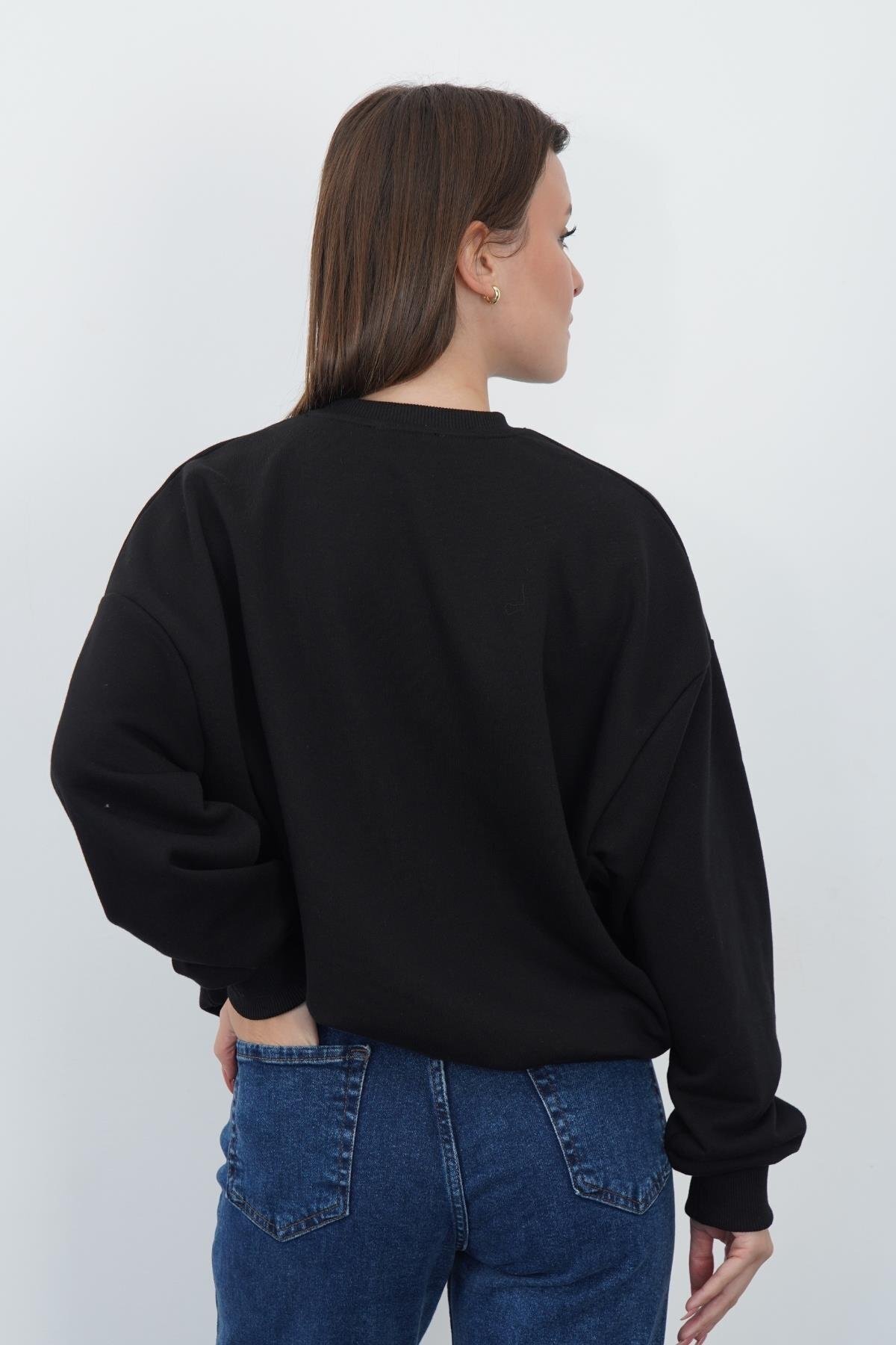Valeria Kadın 3 İplik Şardonsuz Pamuk Oversize Bisiklet Yaka Siyah Sweatshirt Valeria Kadın 3 İplik Şardonsuz Pamuk Oversize Bisiklet Yaka Siyah Sweatshirt 6015001 2XL