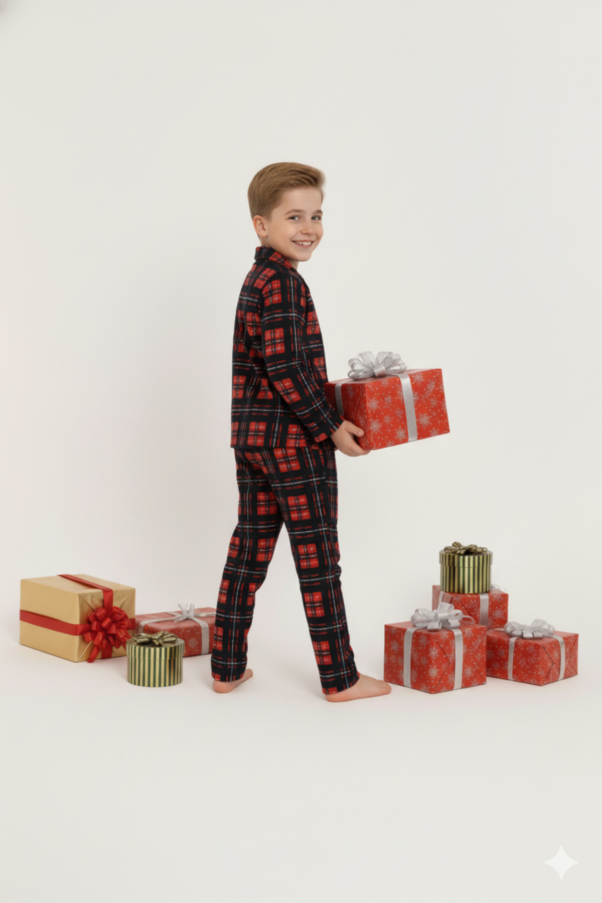 Kırmızı Ekose Desenli Uzun Kollu Gömlek Yaka Düğmeli Erkek Çocuk Pijama Takımı Kırmızı Ekose Desenli Uzun Kollu Gömlek Yaka Düğmeli Erkek Çocuk Pijama Takımı Ekoerkçocuk 13-14 Yaş