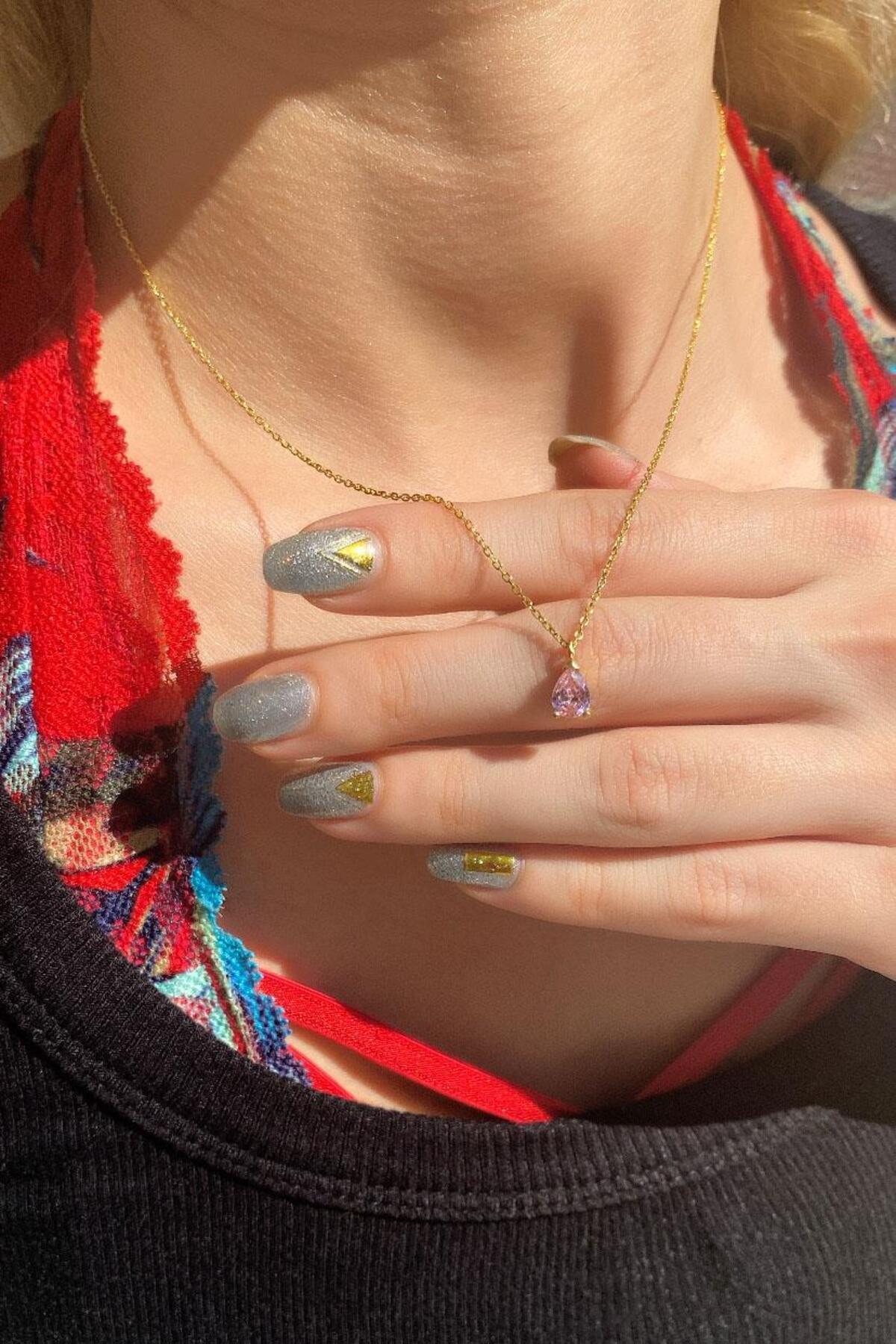 Pembe Taşlı Minimal Damla Kolye Pembe Taşlı Minimal Damla Kolye SPK2015 تک سایز