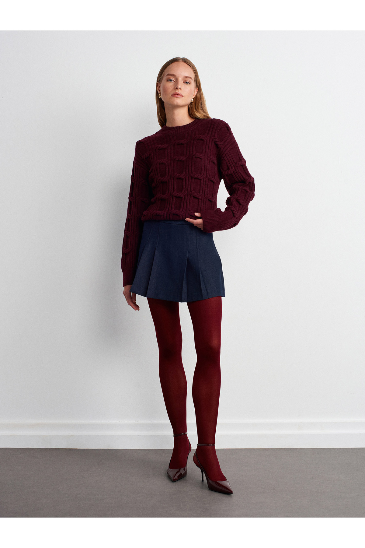 10825 Kabartma Detaylı Triko Kazak-Bordo M. 10825 Kabartma Detaylı Triko Kazak-Bordo M. 101A10825 Standart