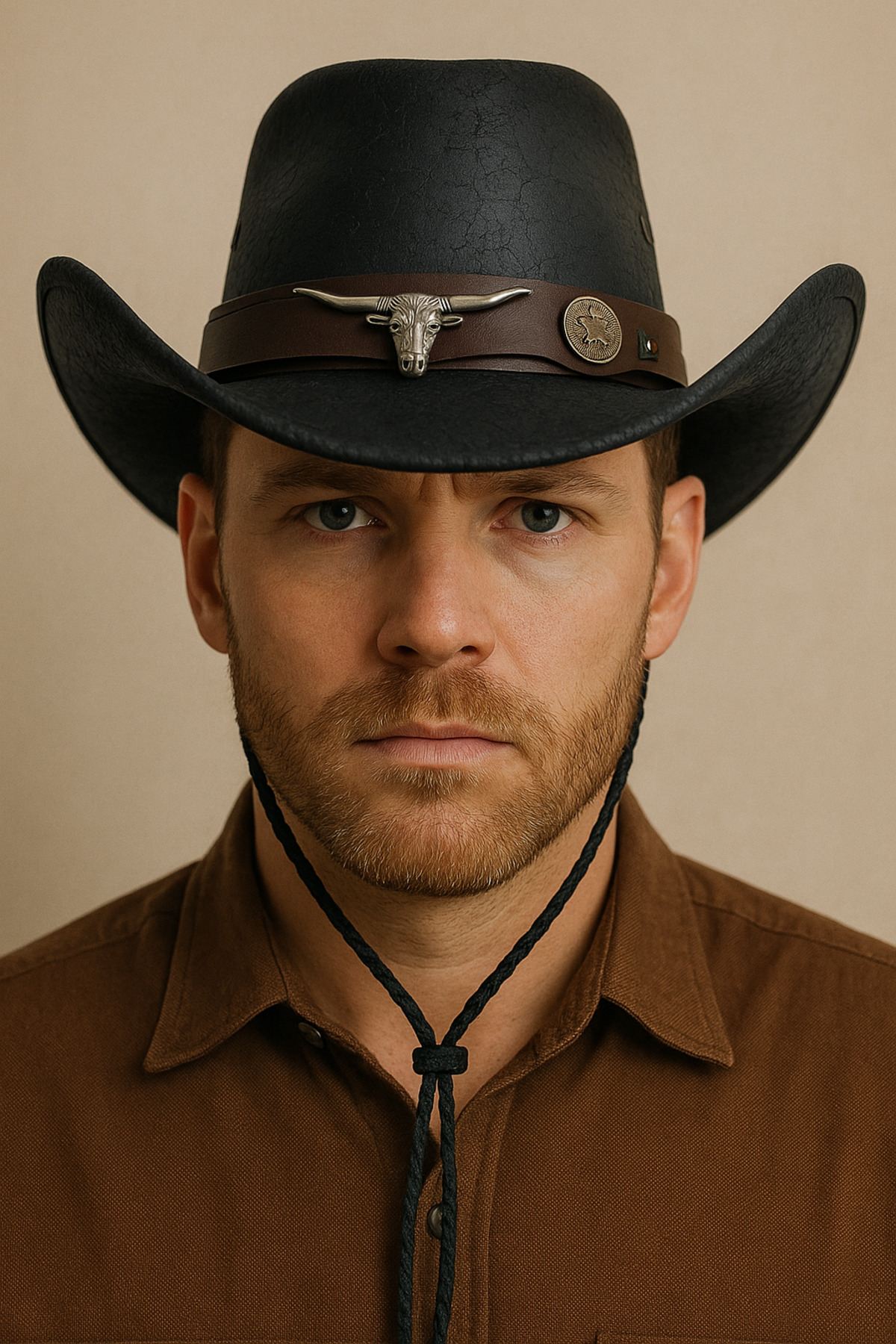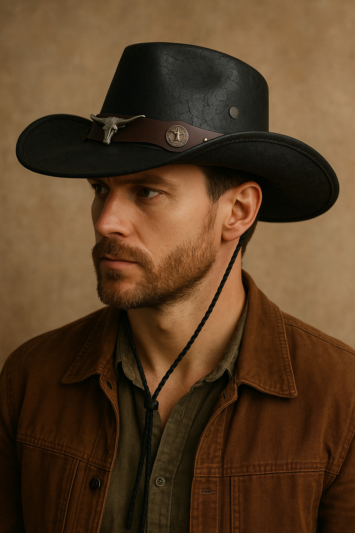 Erkek Siyah Suni Deri Ayarlanabilir Kovboy Şapka Erkek Siyah Suni Deri Ayarlanabilir Kovboy Şapka COSMOS180 Standart
