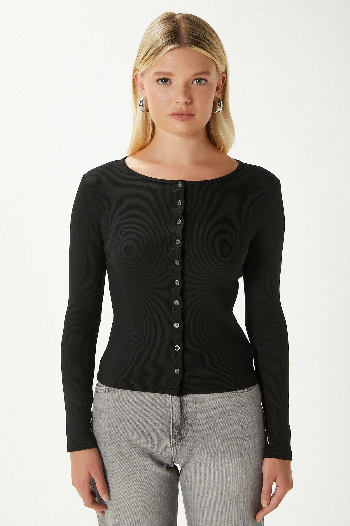 Young Cool Düğmeli Uzun Kollu Siyah Bluz Young Cool Düğmeli Uzun Kollu Siyah Bluz 1609 XL
