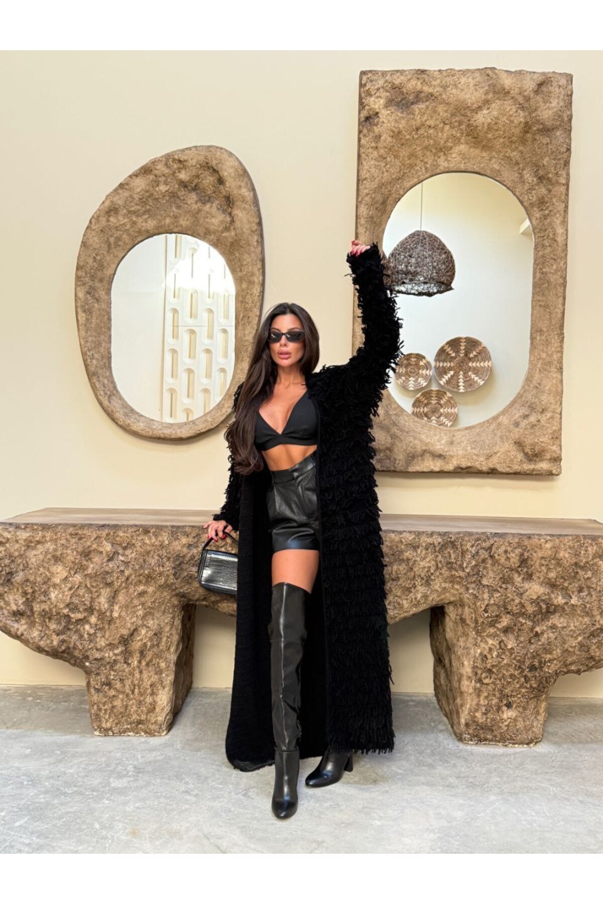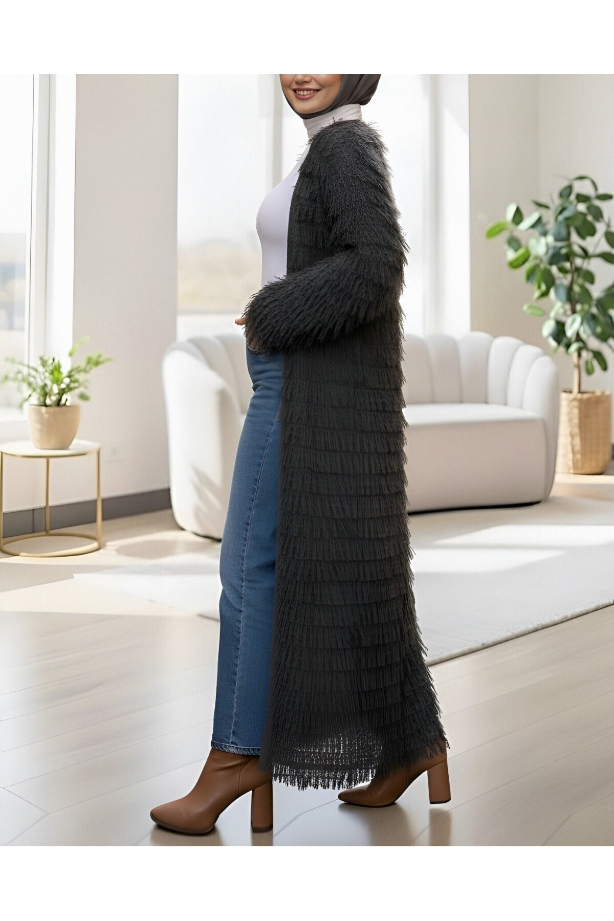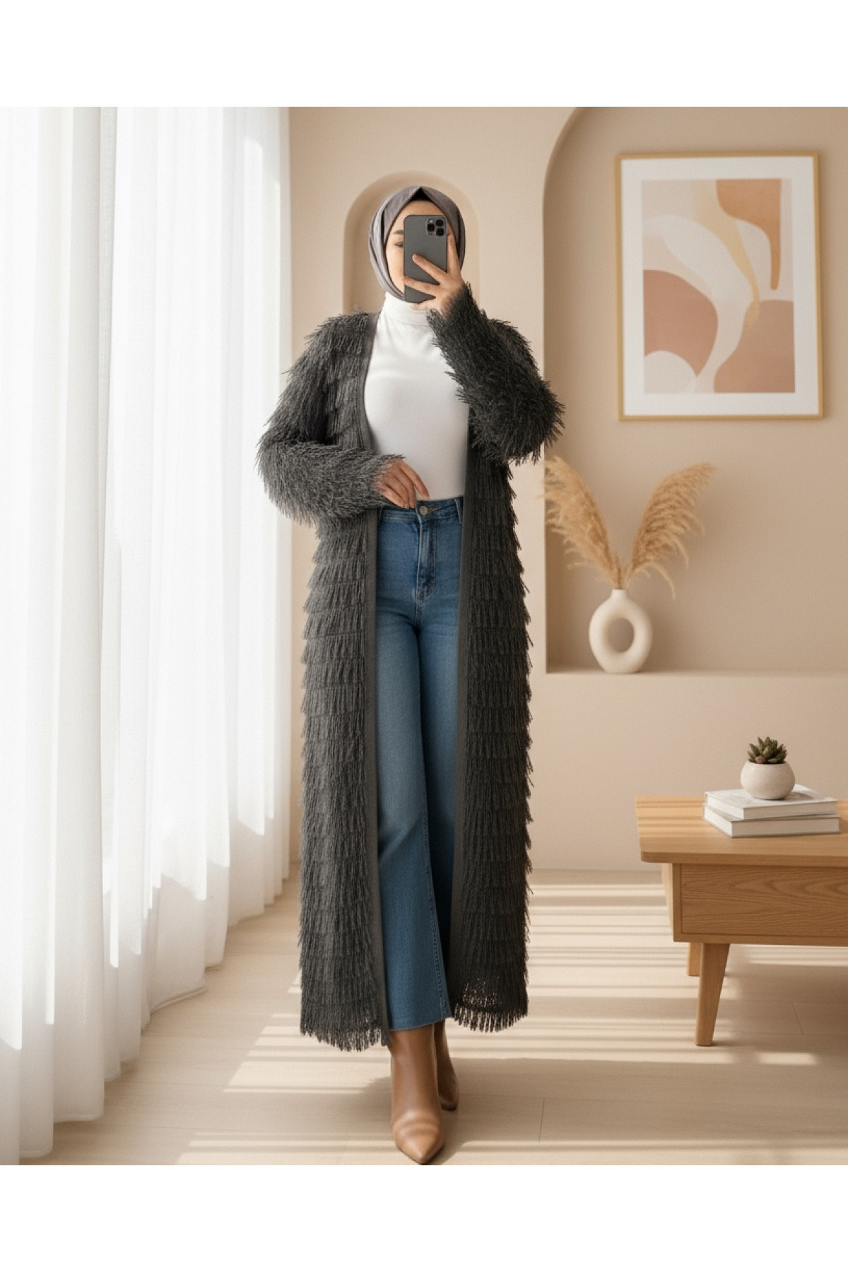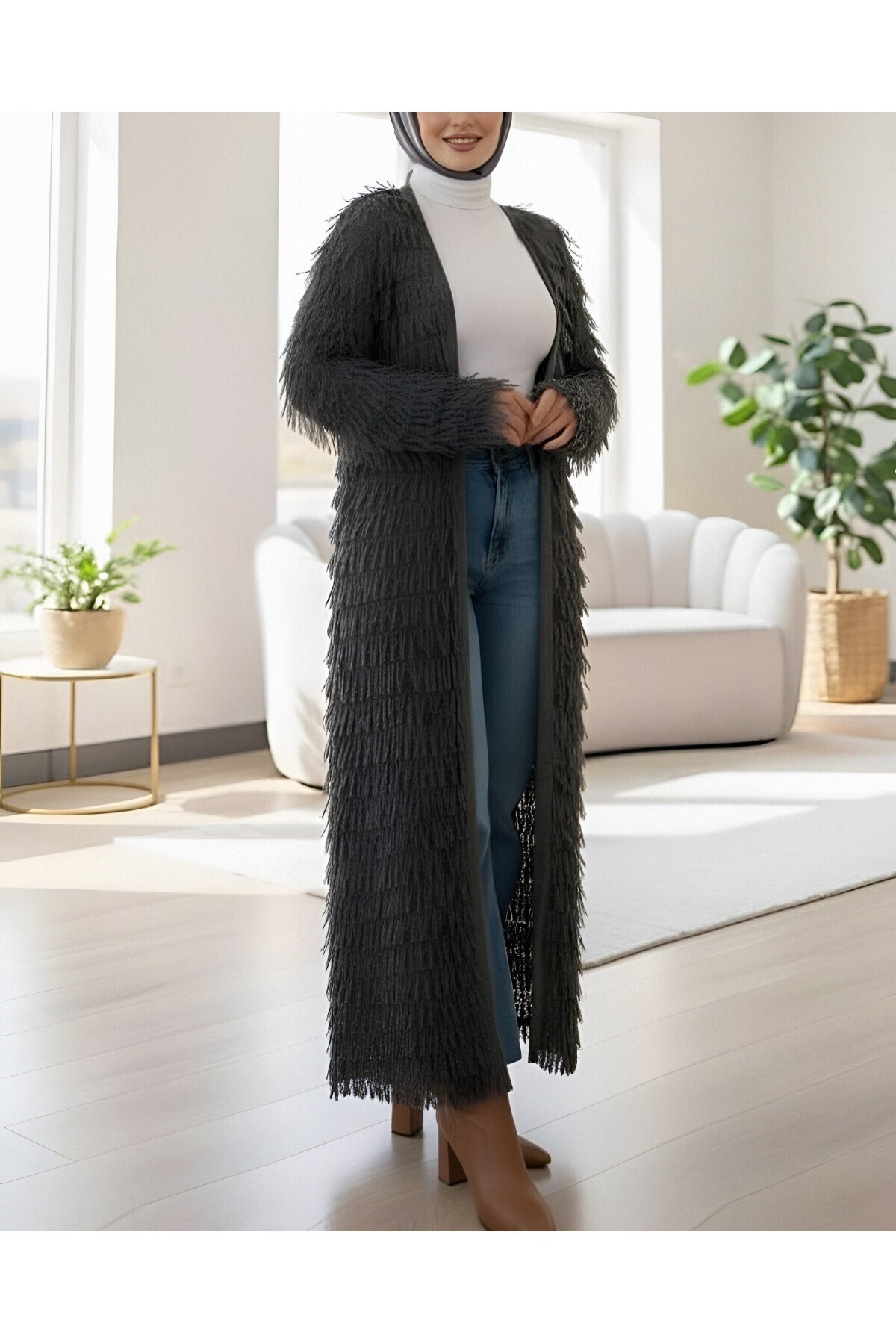 Saçaklı Uzun Triko Hırka -Antrasit Saçaklı Uzun Triko Hırka -Antrasit TY385-3813 Standart