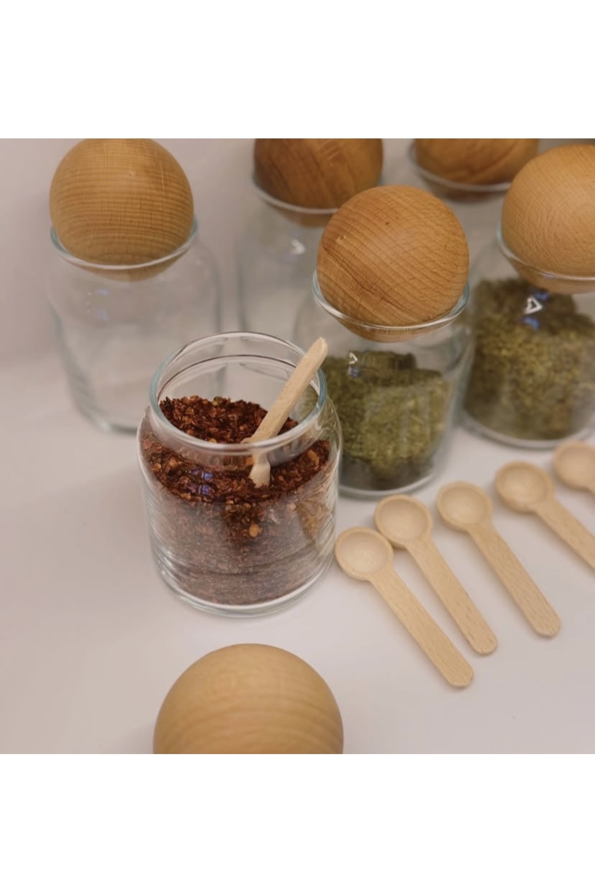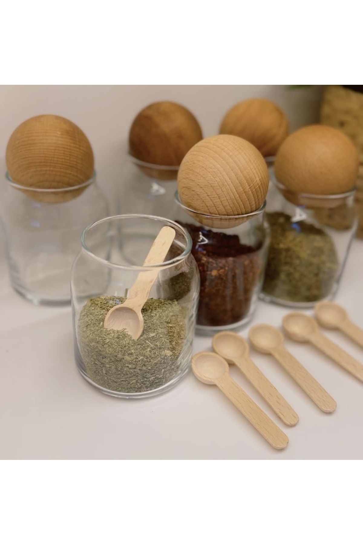 Altılı 300 ml top kapaklı kavanoz seti, baharatlık kavanozu (6adet kaşık hediye) Altılı 300 ml top kapaklı kavanoz seti, baharatlık kavanozu (6adet kaşık hediye) bambu475765 تک سایز