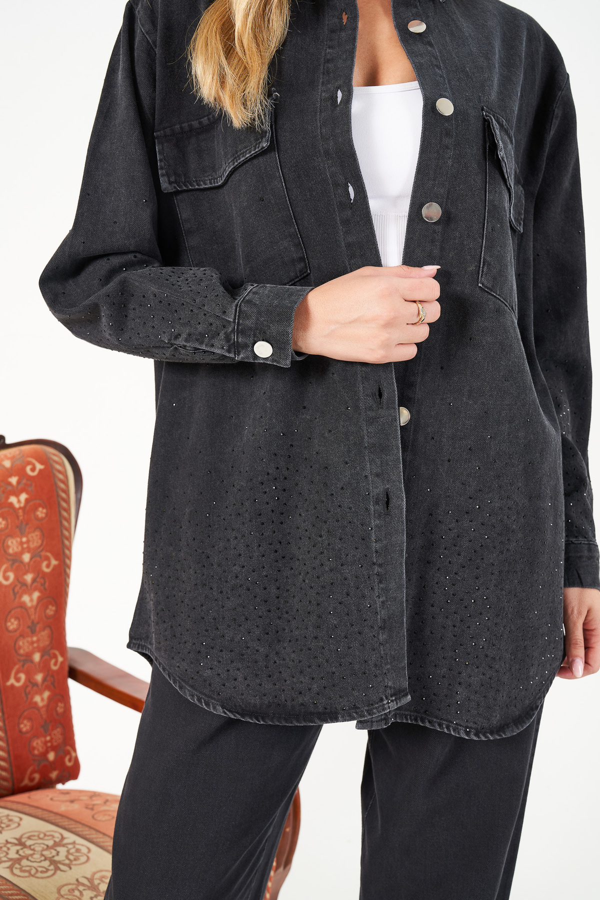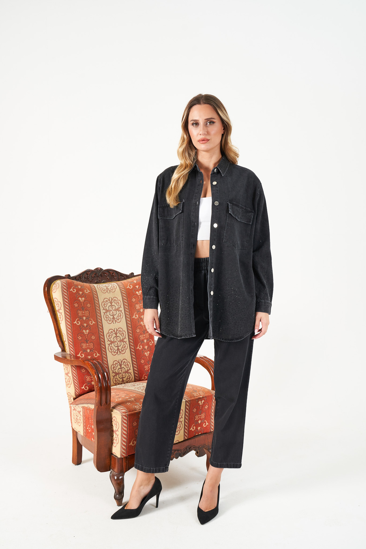 KADIN ÖNÜ VE KOLLARI BONCUK İŞLEMELİ DENIM KUMAŞ GÖMLEK KADIN ÖNÜ VE KOLLARI BONCUK İŞLEMELİ DENIM KUMAŞ GÖMLEK 2072 Standart