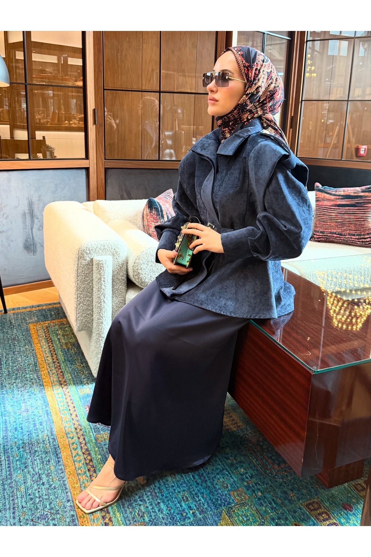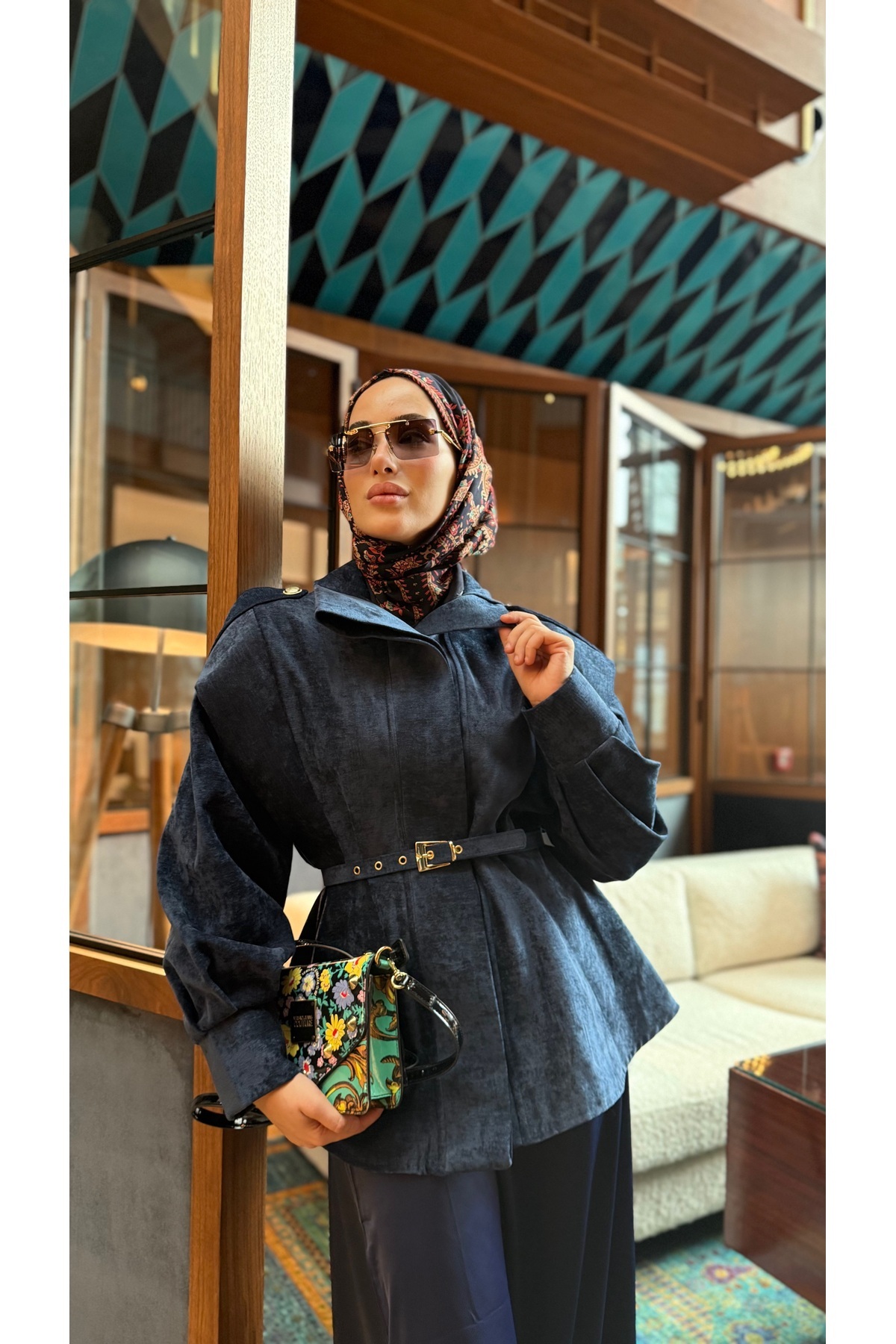 Velvet Aura Kadife Kemer Detaylı Ceket Lacivert Velvet Aura Kadife Kemer Detaylı Ceket Lacivert VLVT00001 36 - 40