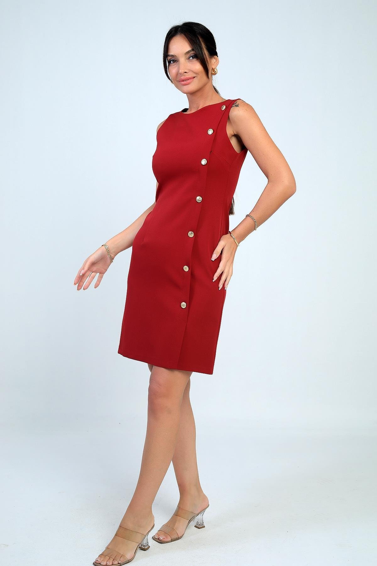 Kadın Kendinden Telalı Yan Düğmeli Kısa Elbise Kadın Kendinden Telalı Yan Düğmeli Kısa Elbise S-25Y0840013 2XL