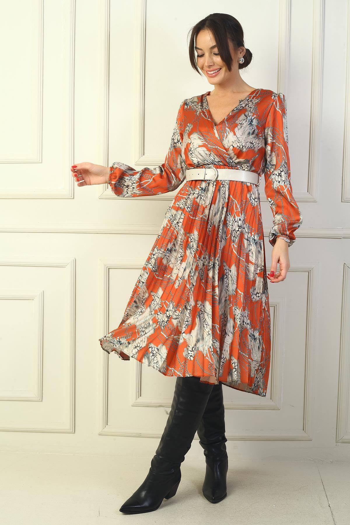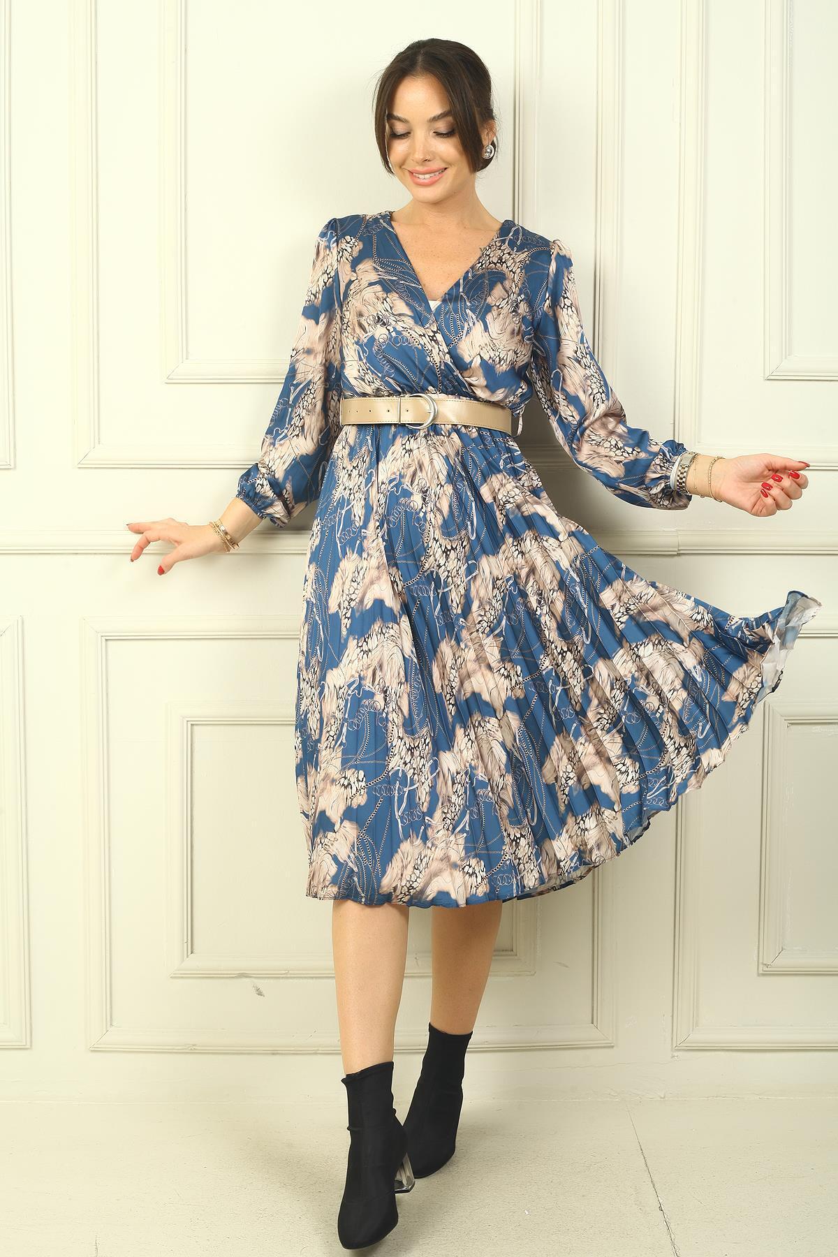 Kadın Kruvaze Yaka Beli Kemerli Astarlı Zincir Desen Piliseli Midi Saten Elbise Kadın Kruvaze Yaka Beli Kemerli Astarlı Zincir Desen Piliseli Midi Saten Elbise S-25Y1520003 XL