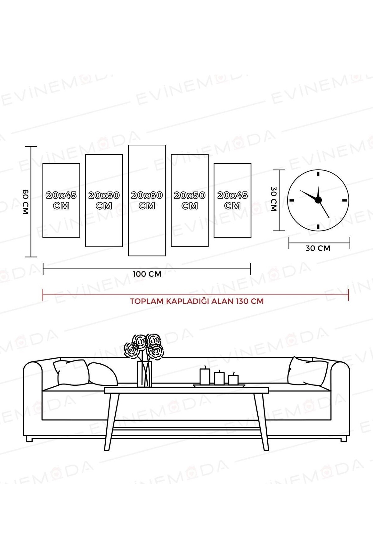 Manzara Desenli dekoratif 5li tablo ve saat seti Manzara Desenli dekoratif 5li tablo ve saat seti manzara 60 x 120