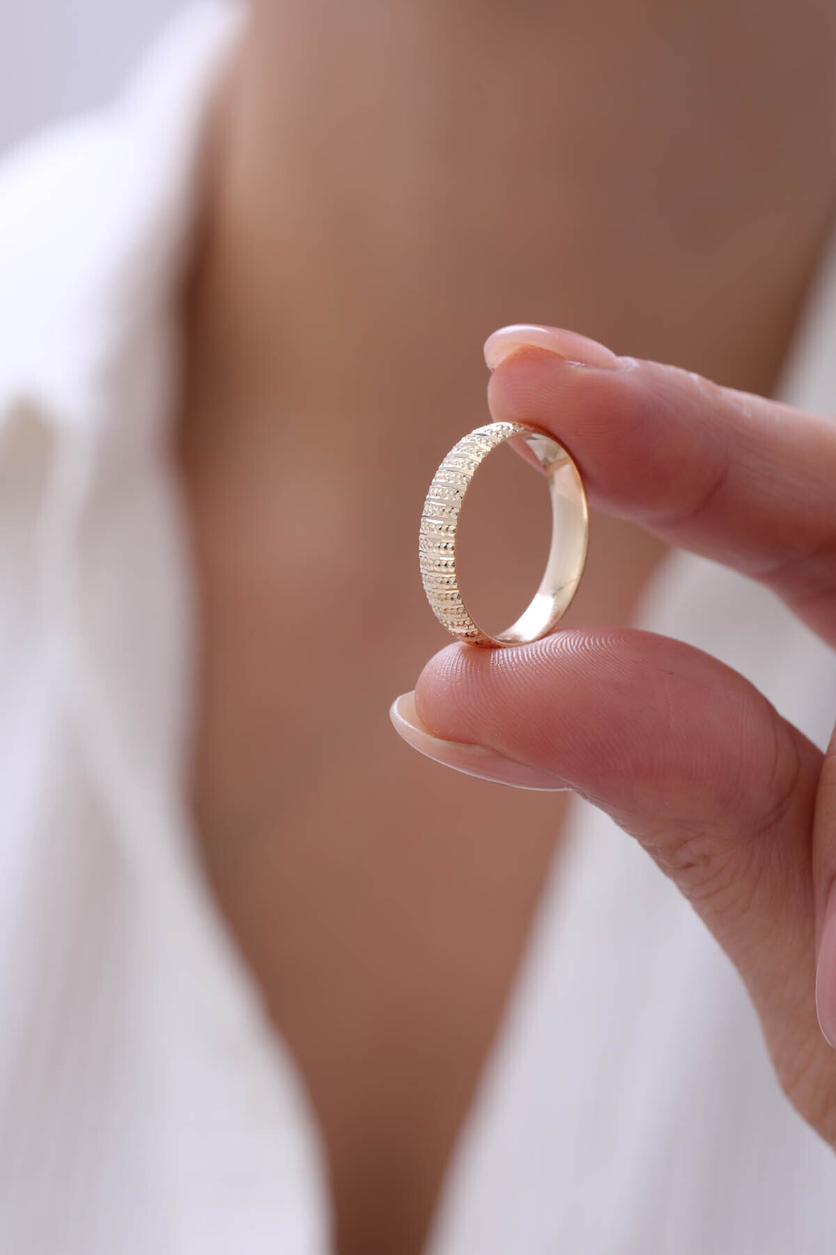 14 Ayar Altın Kalemli Alyans 14 Ayar Altın Kalemli Alyans YKKLY00001586 تک سایز