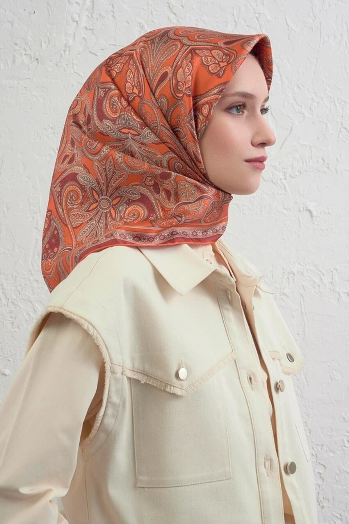 Sura Saf İpek Eşarp 9421 - 34 Turuncu Etnik Desen Sura Saf İpek Eşarp 9421 - 34 Turuncu Etnik Desen تک سایز