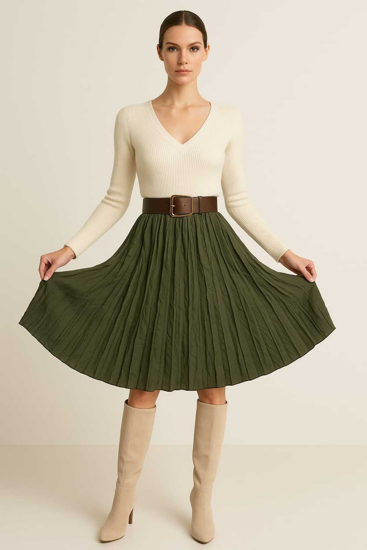 Krınkle Poplin Etek HAKİ Krınkle Poplin Etek HAKİ 820 S/M