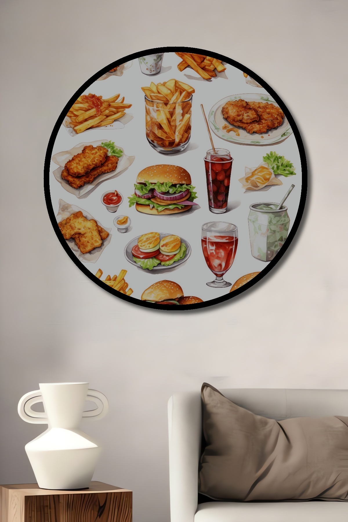 Dekoratif Ahşap MDF Tablo Fast Food Lezzetleri Festivali Yuvarlak Tablo Dekoratif Ahşap MDF Tablo Fast Food Lezzetleri Festivali Yuvarlak Tablo brs_5647_Tn_Ta 50 x 50