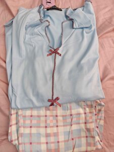Mavi Ekose Desenli Kadın Pijama Takımı Mavi Ekose Desenli Kadın Pijama Takımı 7183 2XL