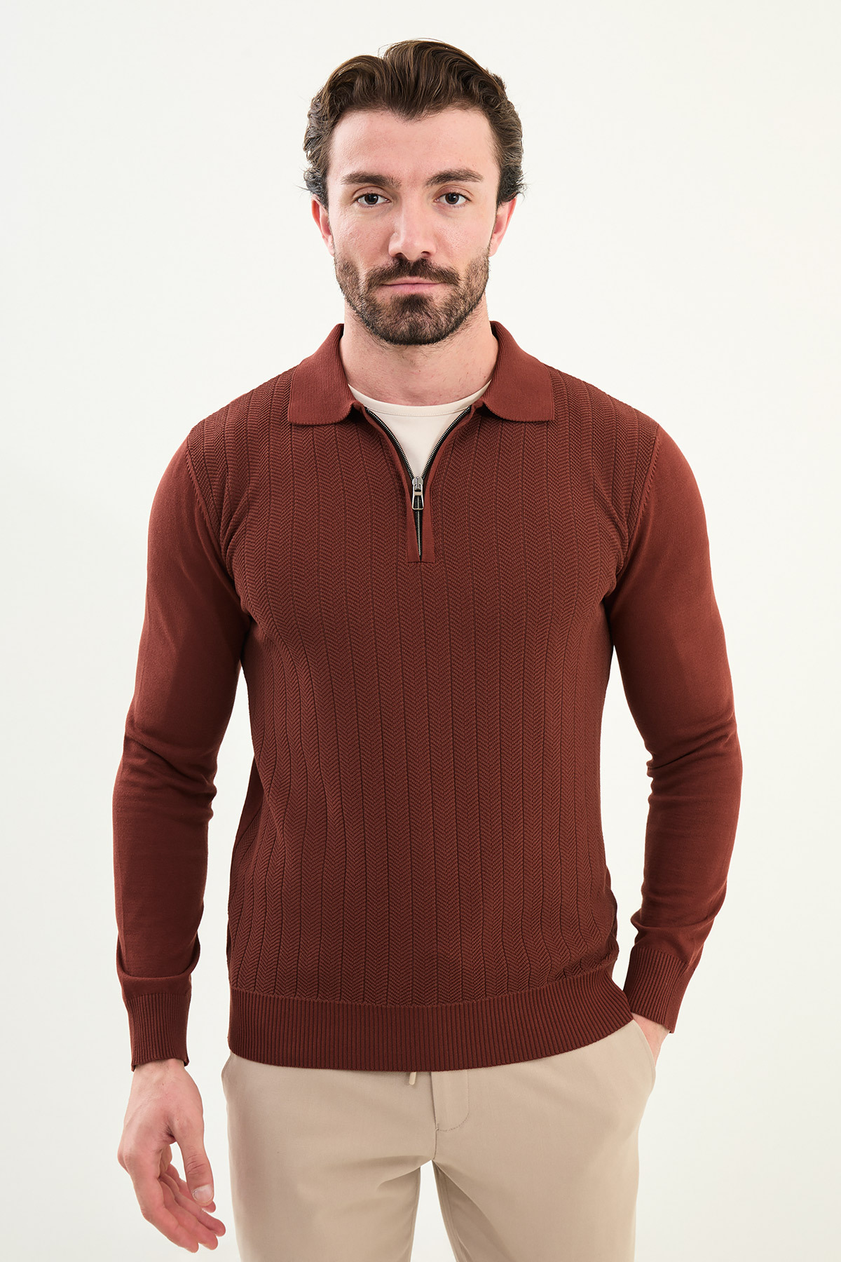 Desenli Slim Fit Bisiklet Yaka Erkek Triko Kazak Bej - 11577.25K Desenli Slim Fit Bisiklet Yaka Erkek Triko Kazak Bej - 11577.25K 2XL