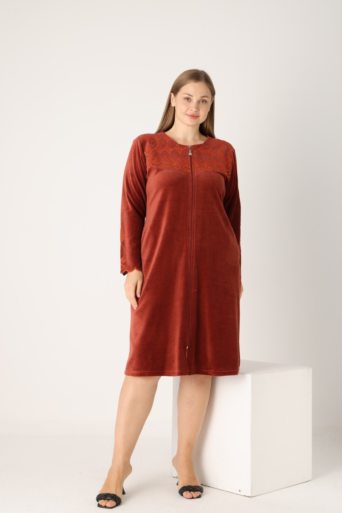 Nakışlı Taşlı Cepli Fermuarlı Kışlık Kadife Büyük Beden Elbise Nakışlı Taşlı Cepli Fermuarlı Kışlık Kadife Büyük Beden Elbise 26-218 5XL