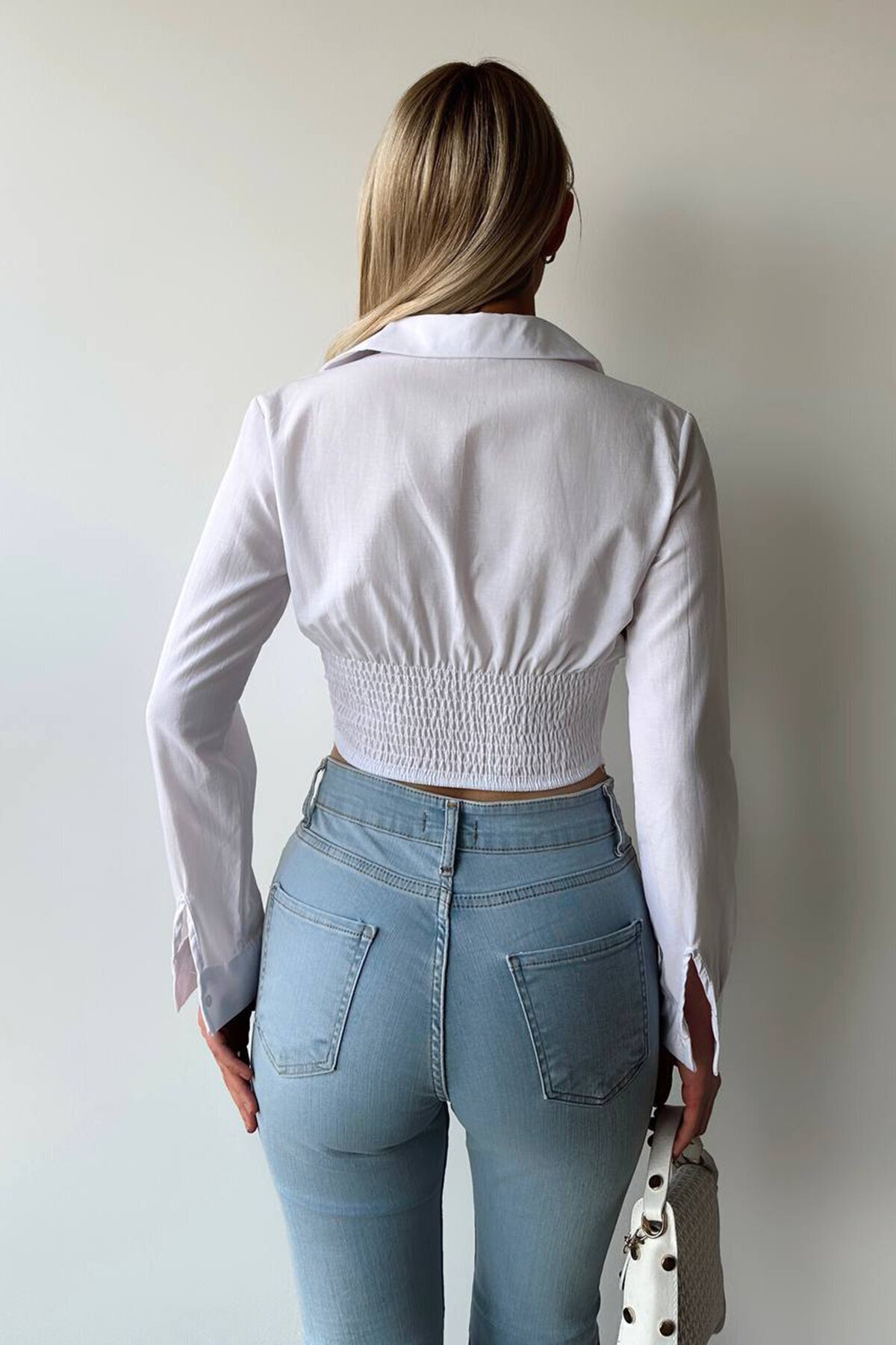 Kadın Beyaz Korse Görünümlü Düğmeli Gömlek Vs01363 Kadın Beyaz Korse Görünümlü Düğmeli Gömlek Vs01363 VS01363 L