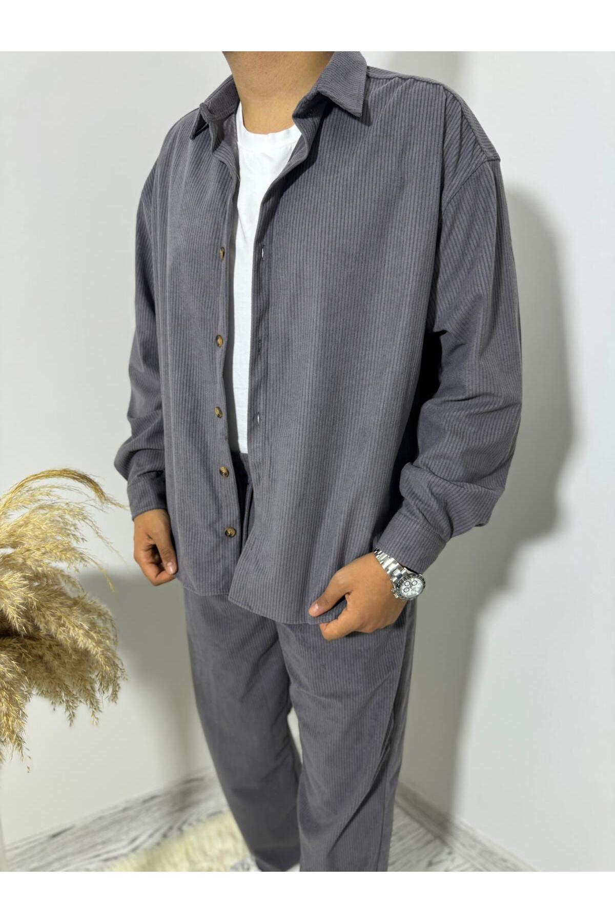 KADİFE GÖMLEK PANTALON İKİLİ TAKIM - RAHAT KESİM KADİFE GÖMLEK PANTALON İKİLİ TAKIM - RAHAT KESİM W26LBM4006 XL