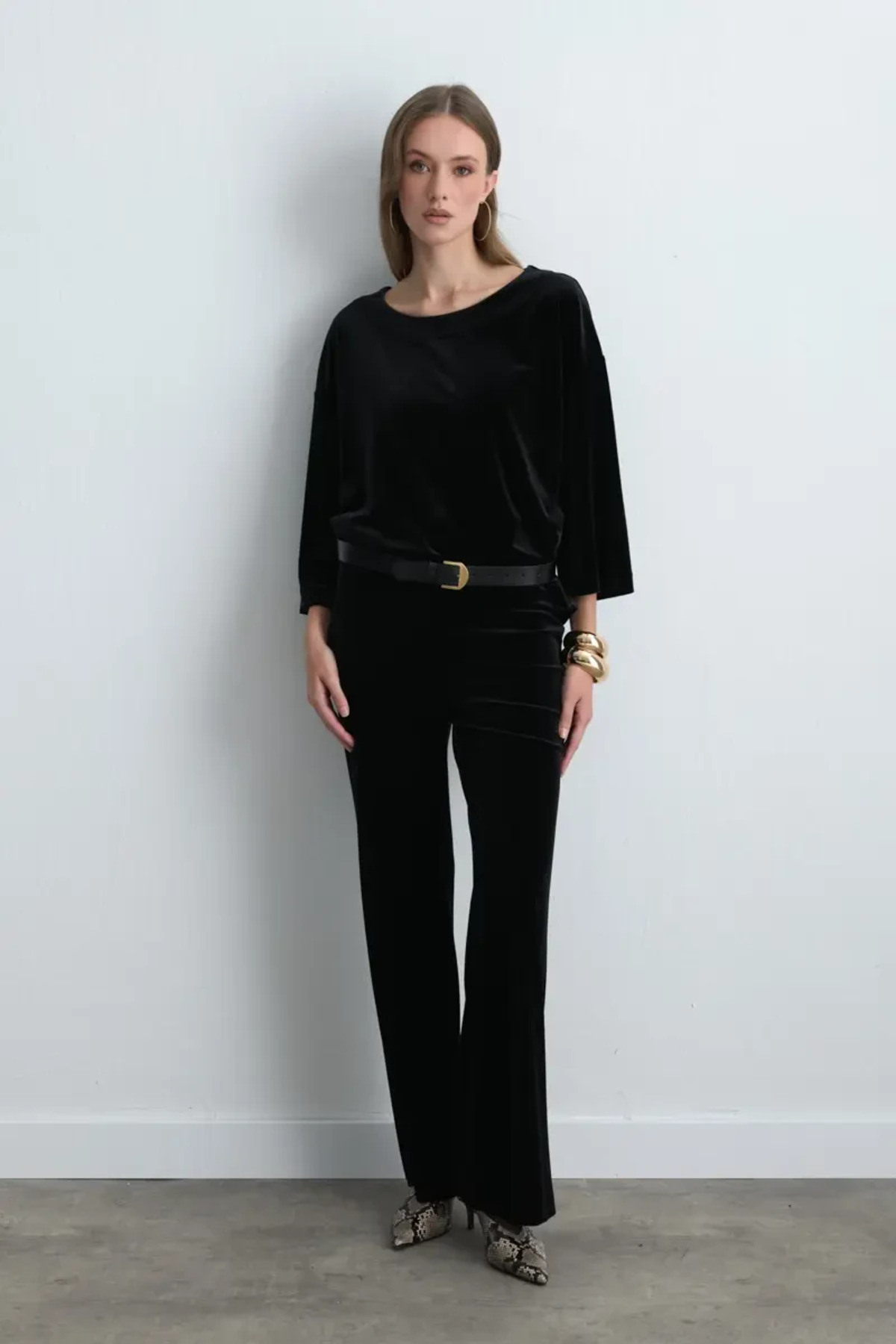 Yuvarlak Yaka Kadife Bluz - Siyah Yuvarlak Yaka Kadife Bluz - Siyah 26KG003559 3