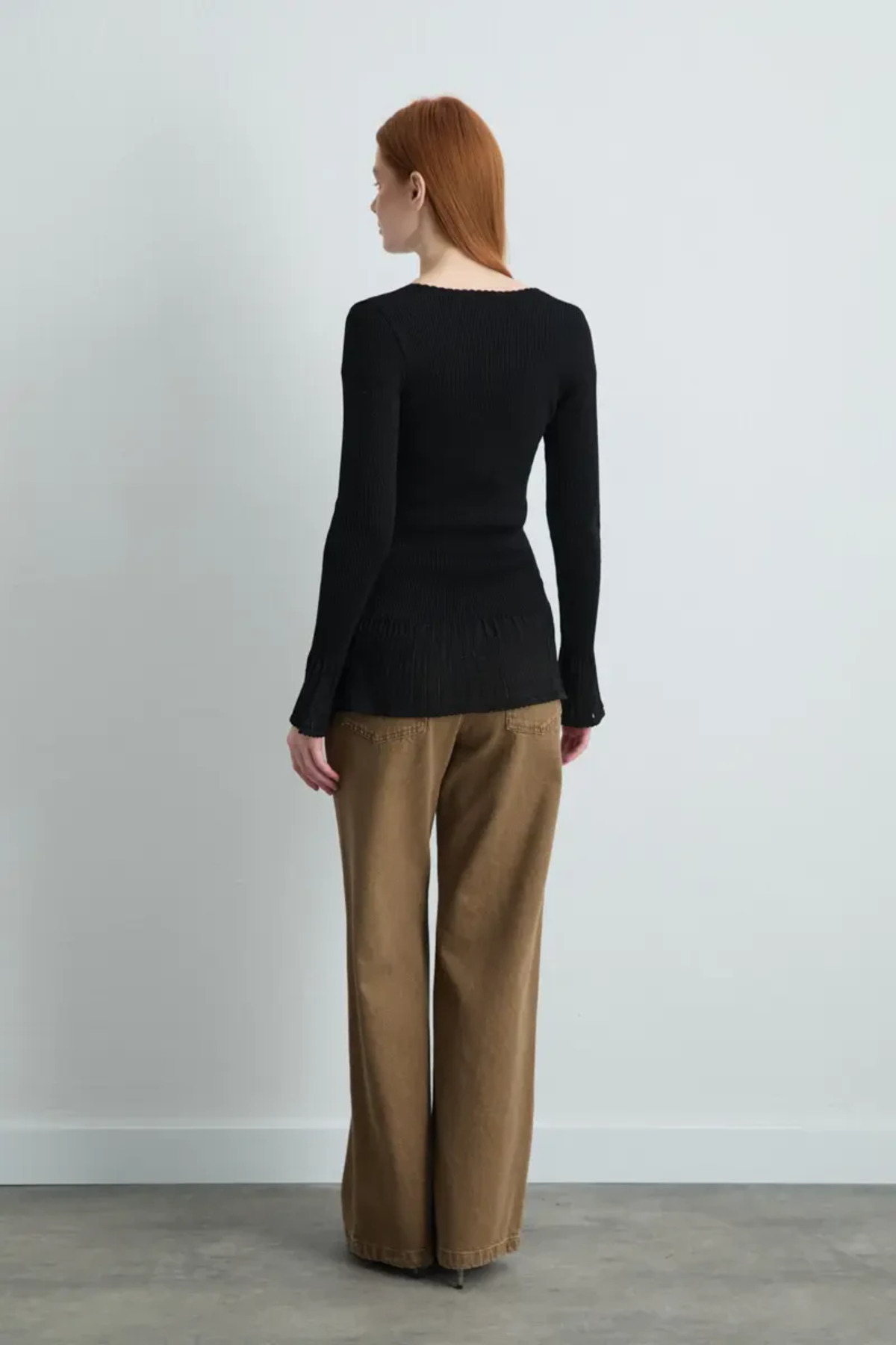 Kalp Yaka Fırfır Detaylı Triko Bluz - Siyah Kalp Yaka Fırfır Detaylı Triko Bluz - Siyah 26KMAY003 3