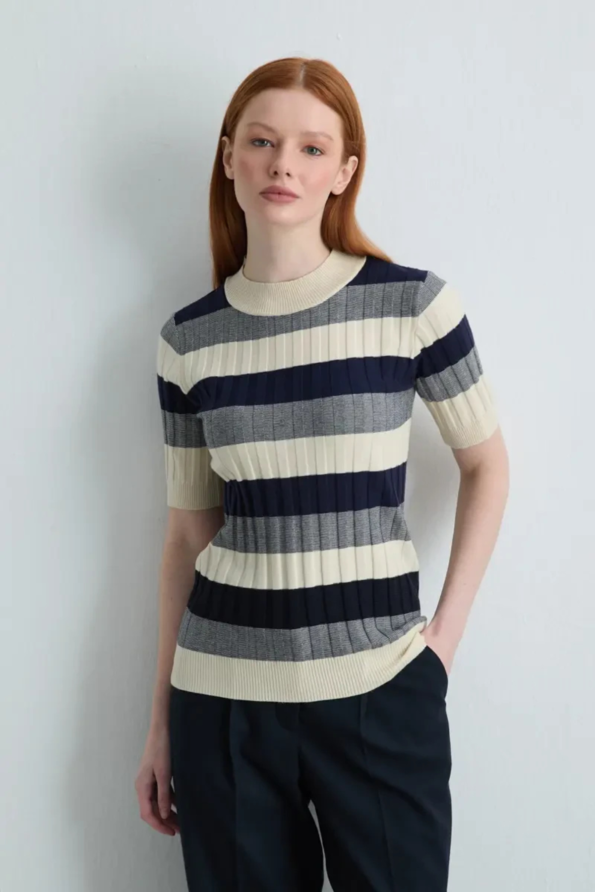 Kısa Kollu Triko Bluz - Mavi Kısa Kollu Triko Bluz - Mavi 26KMAY023 3