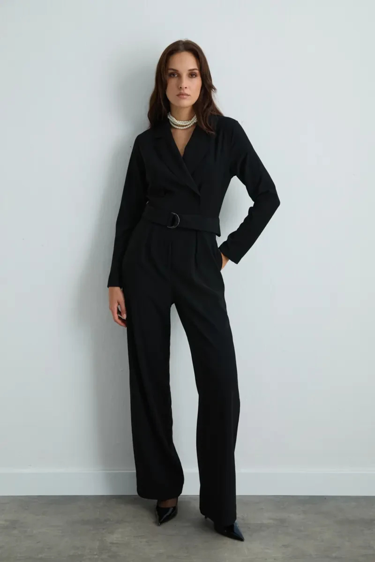Ceket Yakalı Krep Tulum - Siyah Ceket Yakalı Krep Tulum - Siyah 26KG003900 XL