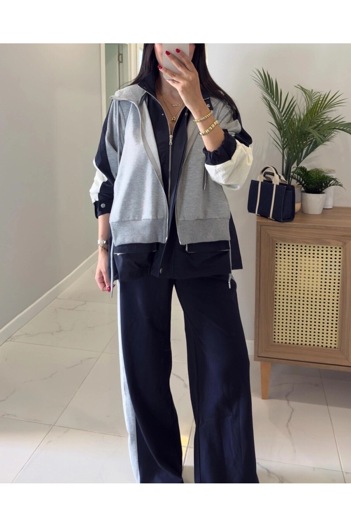 Lacivert Gri Kapüşonlu Tasarım İkili Takım Lacivert Gri Kapüşonlu Tasarım İkili Takım LAVSET941KY L
