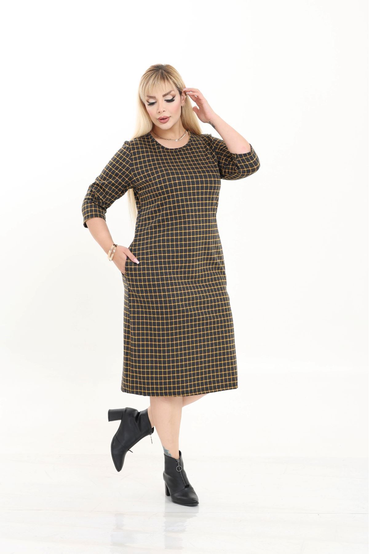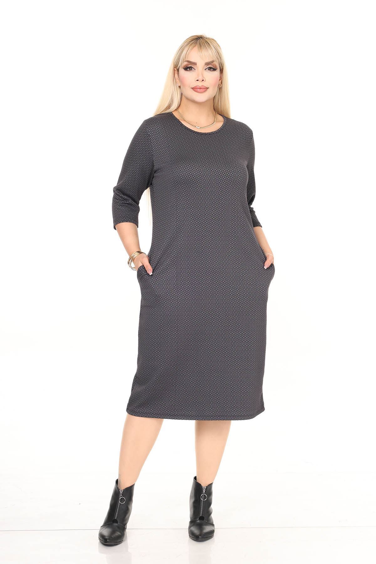 Çift Cepli Desenli Esnek Kışlık Büyük Beden Midi Elbise 9F-2717 Çift Cepli Desenli Esnek Kışlık Büyük Beden Midi Elbise 9F-2717 22D-2714 52-54