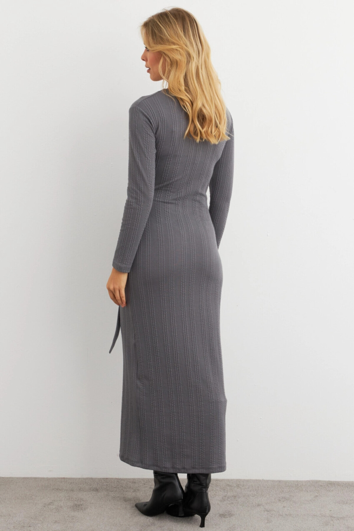 Kadın Antrasit Kruvaze Maxi Elbise COL31 Kadın Antrasit Kruvaze Maxi Elbise COL31 XL