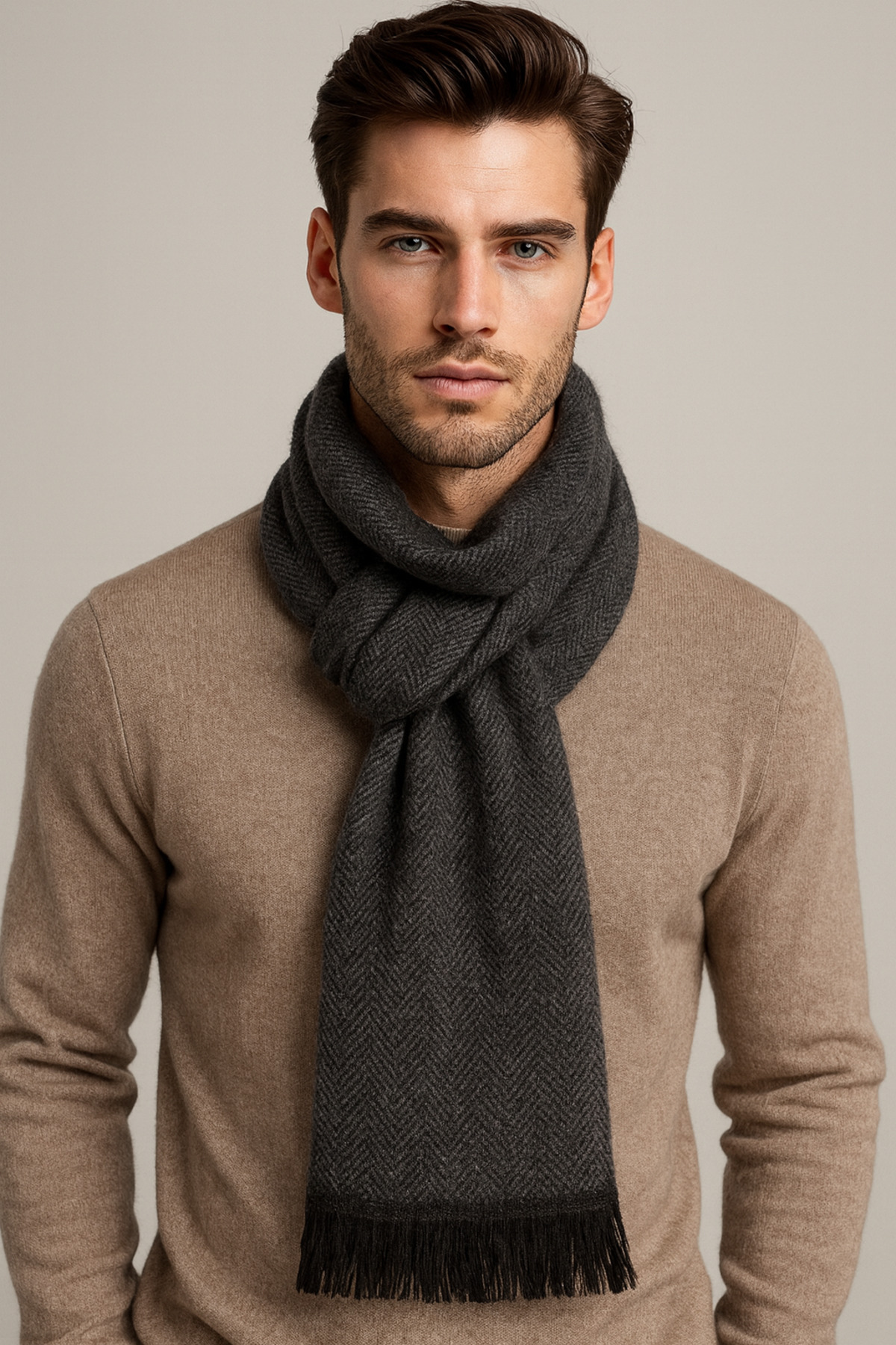 Ahşap Hediye Kutusunda Gri Siyah Antrasit Çizgili Erkek Kışlık Atkı Ahşap Hediye Kutusunda Gri Siyah Antrasit Çizgili Erkek Kışlık Atkı ATK-126 Standart