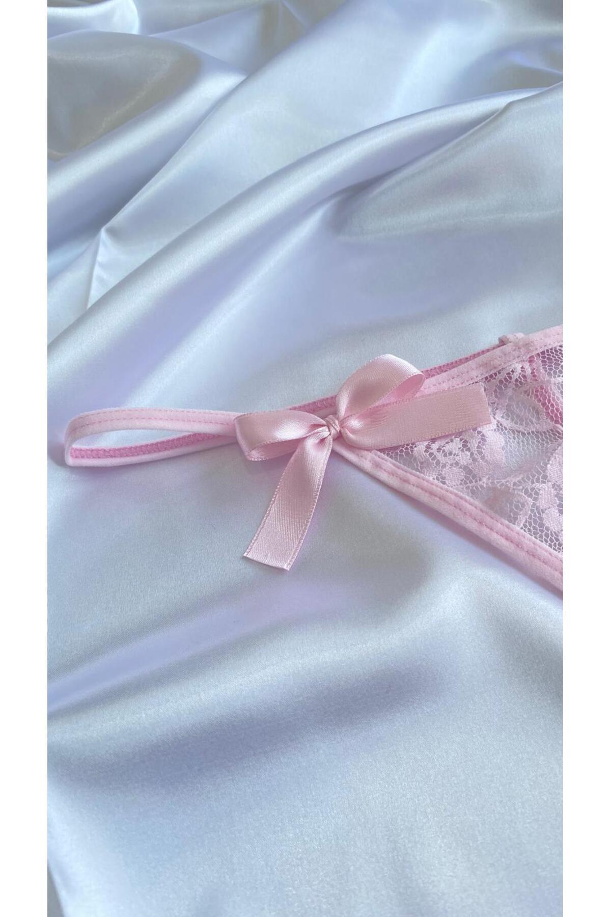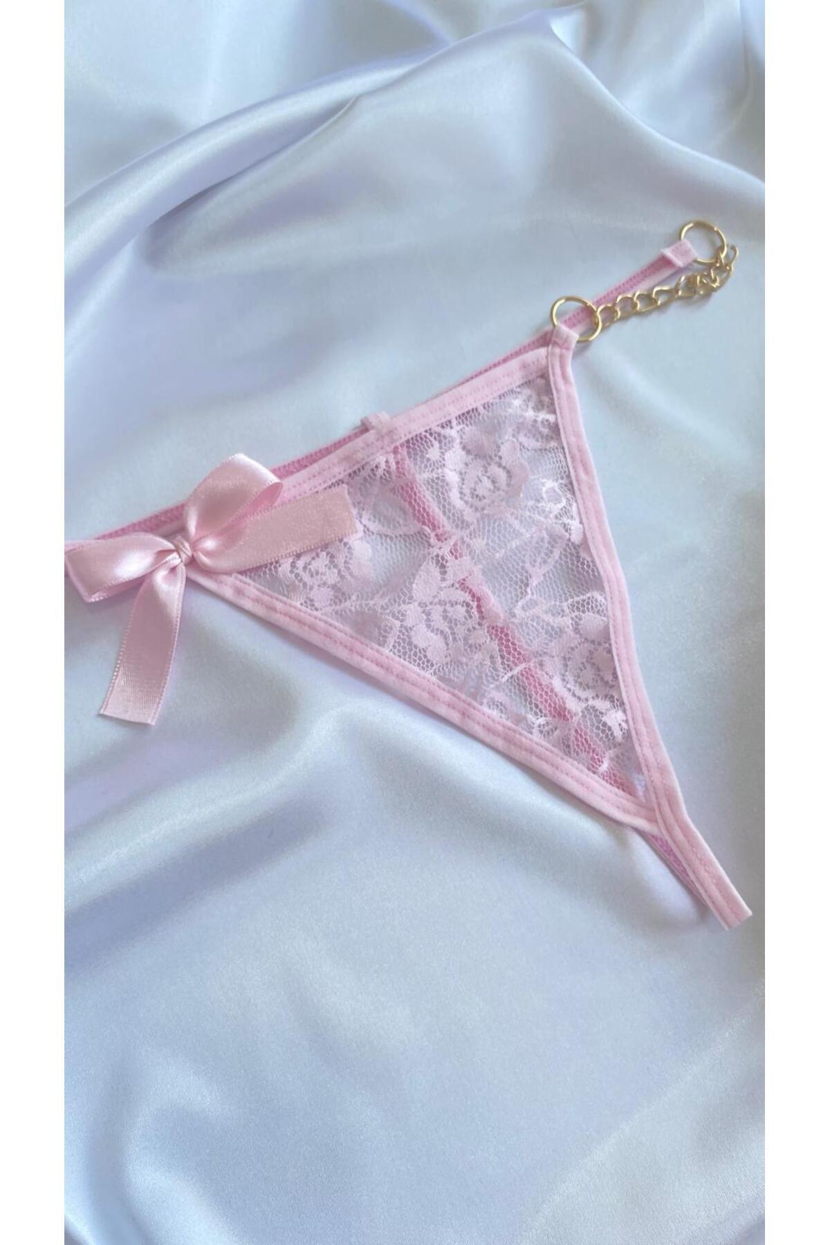 Kadın Pembe Dantel Fiyonk ve Zincir Detaylı Tanga Kadın Pembe Dantel Fiyonk ve Zincir Detaylı Tanga 00121GHM L/XL