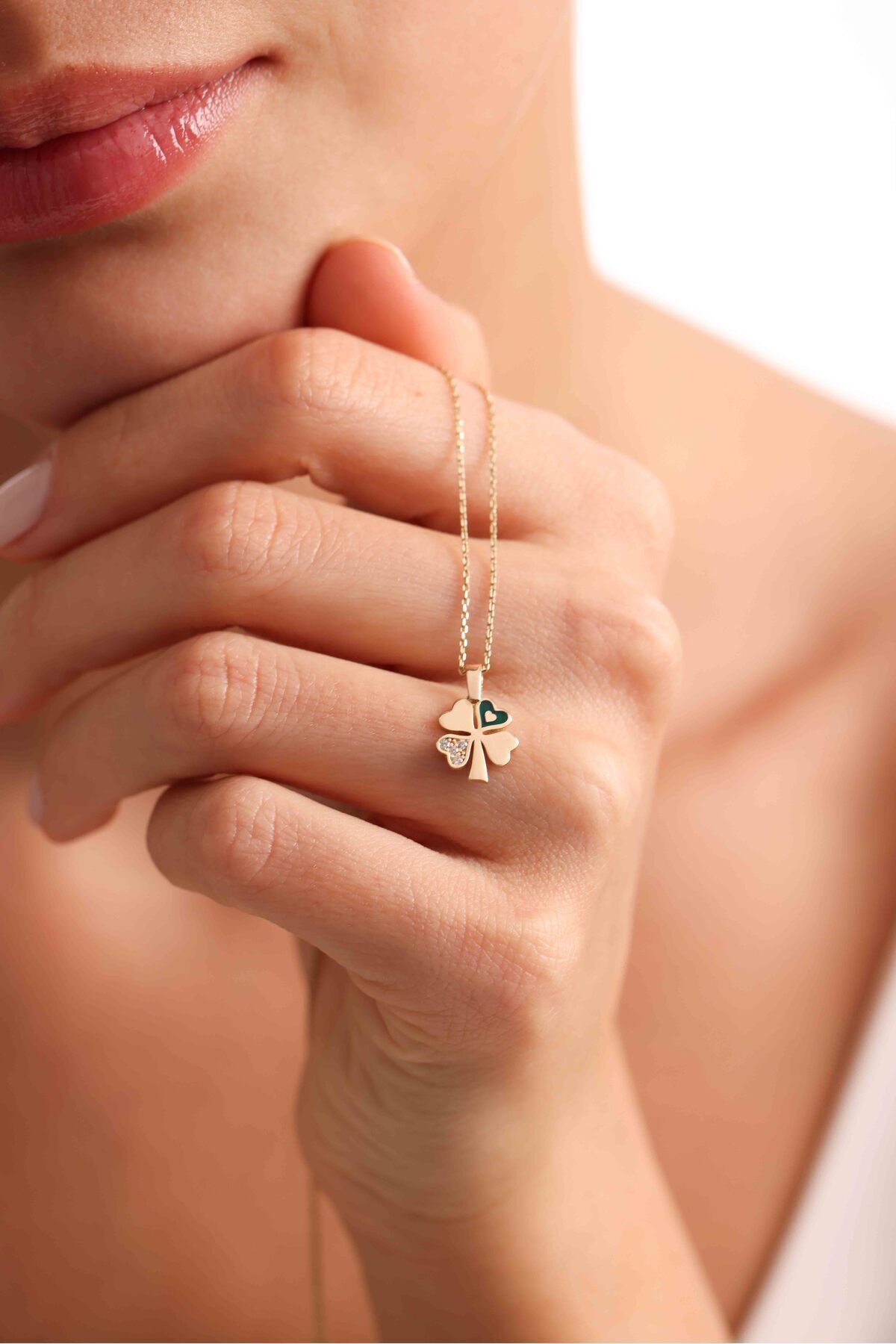 14 Ayar Altın Taşlı Beyaz Mineli Yonca Kolye Ucu 14 Ayar Altın Taşlı Beyaz Mineli Yonca Kolye Ucu 574839 تک سایز