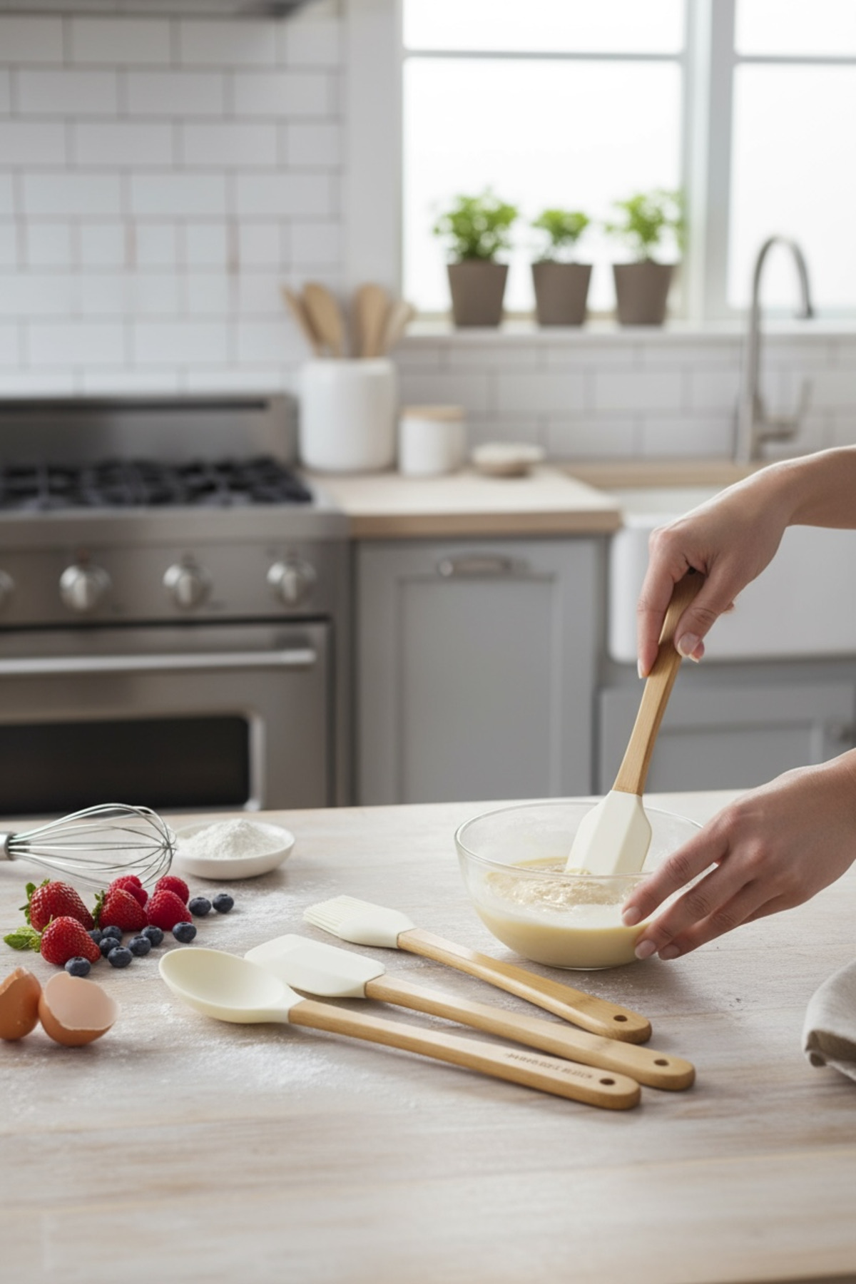 5'Li Silikon Bambu Saplı Spatula Seti (Beyaz) 5'Li Silikon Bambu Saplı Spatula Seti (Beyaz) spatulaset001 تک سایز
