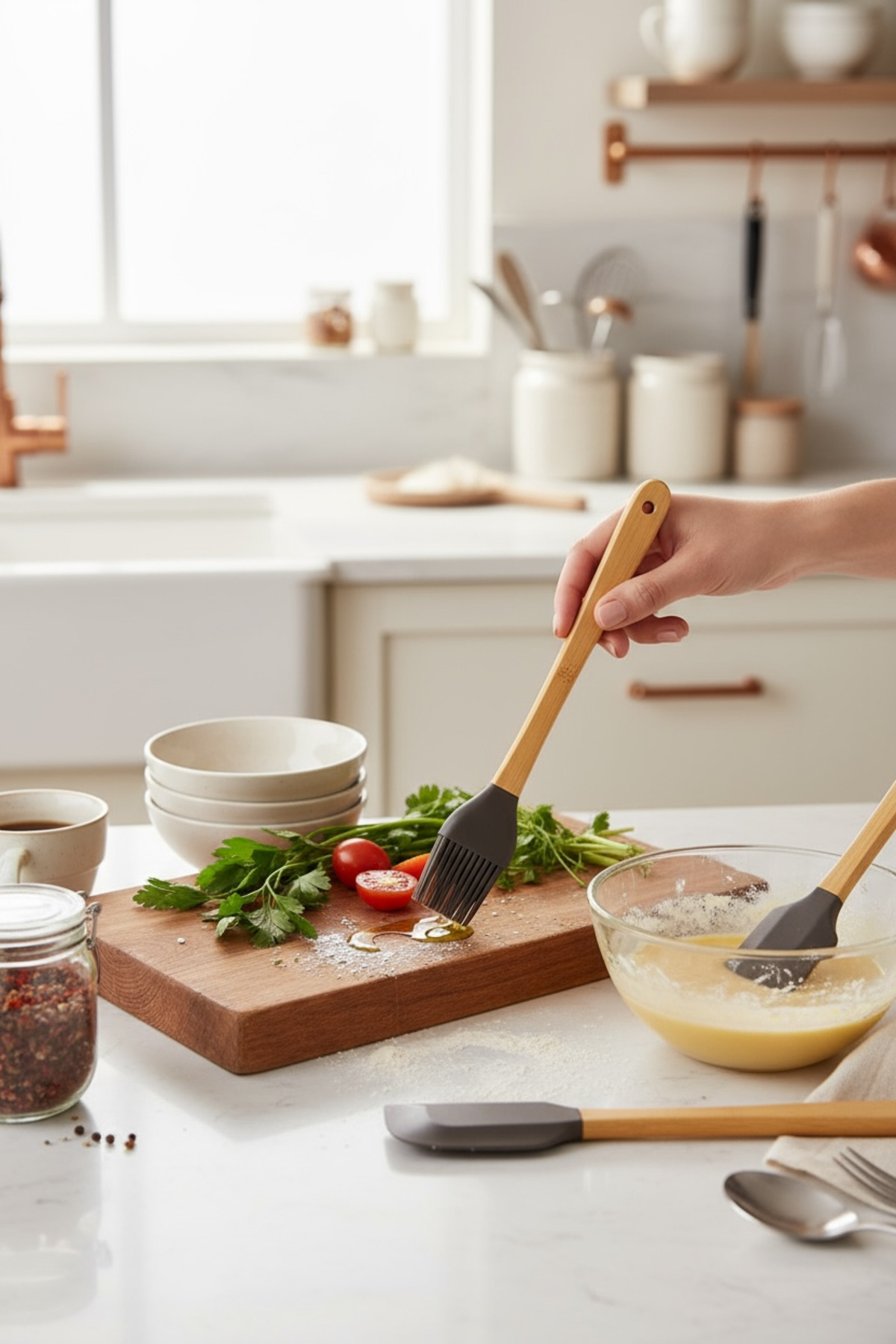 5'Li Silikon Bambu Saplı Spatula Seti (Kahverengi) 5'Li Silikon Bambu Saplı Spatula Seti (Kahverengi) spatulaset001 تک سایز